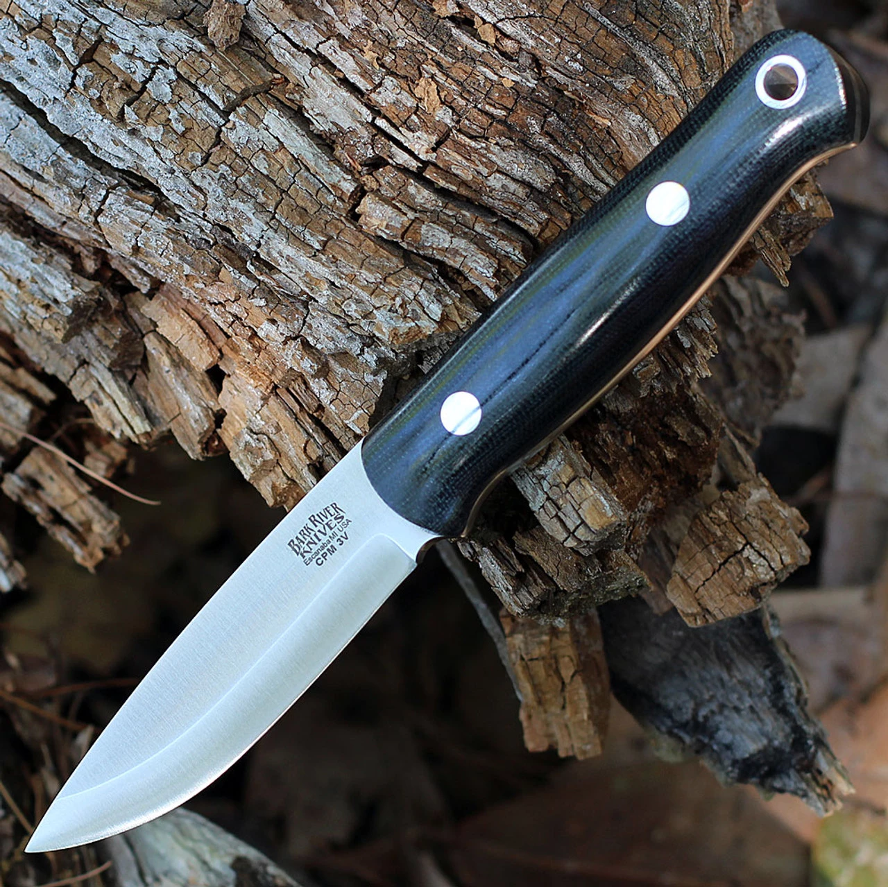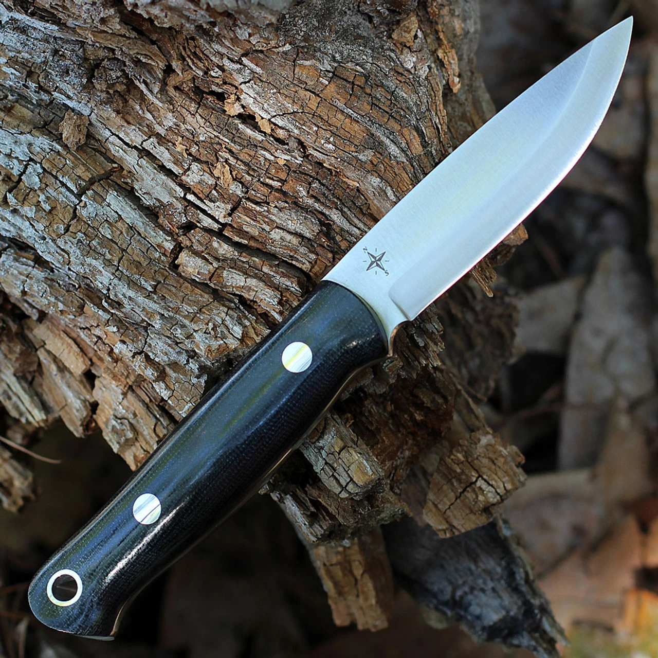 Bark River Bushcrafter (06-123MBC) – 3.88″ CPM-3V Satin Drop Point Blade, Black Canvas Micarta HandleÂ