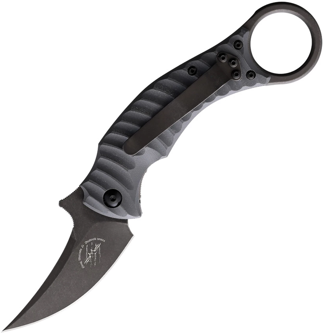 The Mako Folder from Bastinelli Creations is a collaboration with Doug Marcaida and Funker Tactical. It is built with a karambit inspired handle that offers multiple grip options and top-notch security in-hand. It features an upswept blade with a unique opener for ambidextrous, one-handed deployment. Includes a reversible pocket clip that leaves the finger ring exposed for quick and easy accessibility.