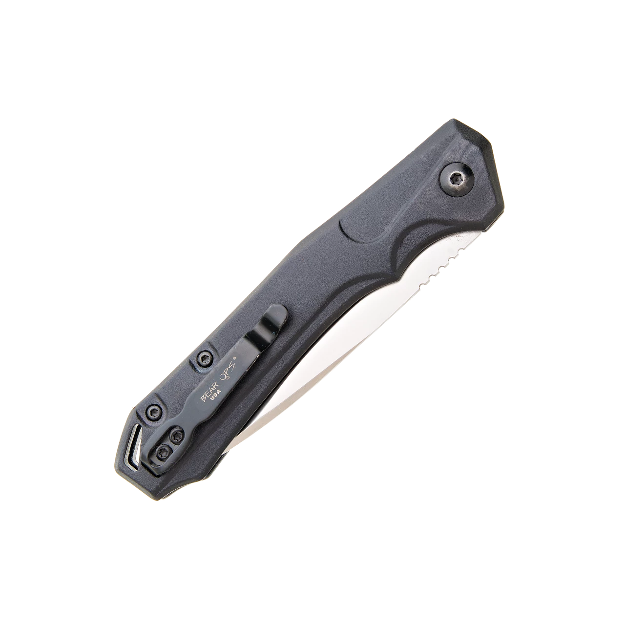 The Bear Ops AC-1800 is part of the Auto Bold Action® XVI series. The Hollow Ground 2 3/4″ blade edge is made with Sandvik CPM-S35VN with a Bead Finish allowing for a tough blade with great edge retention. The blade quickly opens with a press of the raised button with a safety lock switch just below. Although it is an automatic, the small blade size makes it legal to carry in the State of California. The Stainless Steel 4 1/2″ handle features a pocket clip for tip up carry. The Bear Ops AC-1800 has an overall length of 8 3/4″ and weighs 2.9 ounces. Bold Action® XVI is proudly made in the USA.