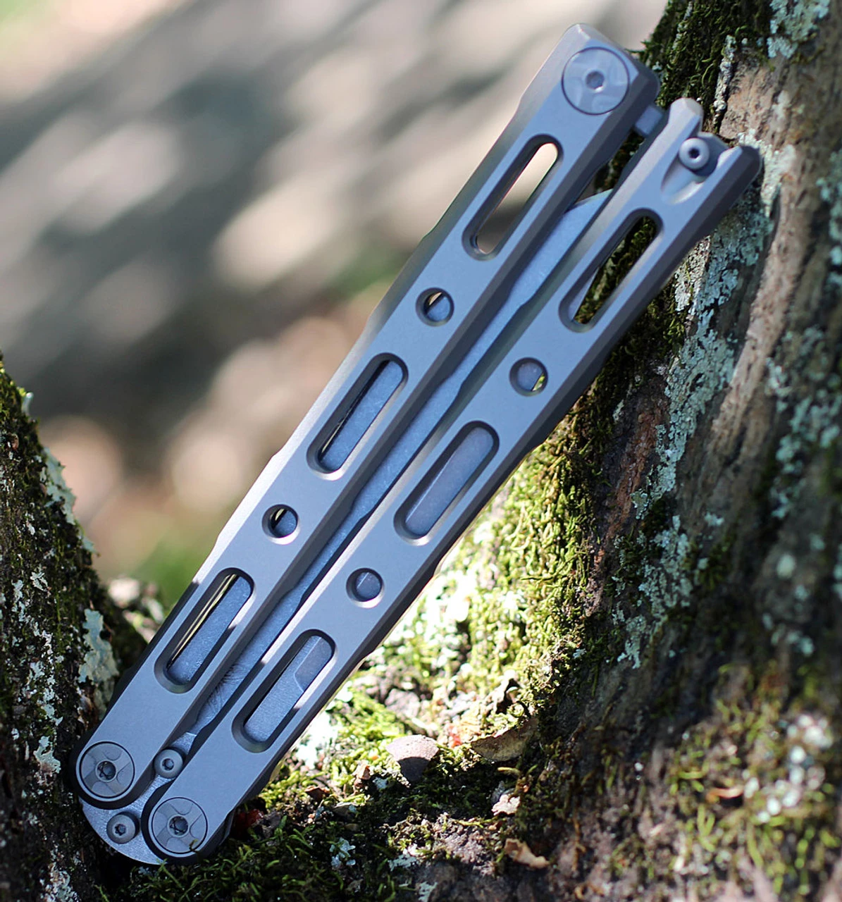 Benchmade 85 Bali-Song Butterfly Knife – 4.40″ CPM-S30V Stonewashed Drop Point Blade, Integral Titanium HandlesÂ