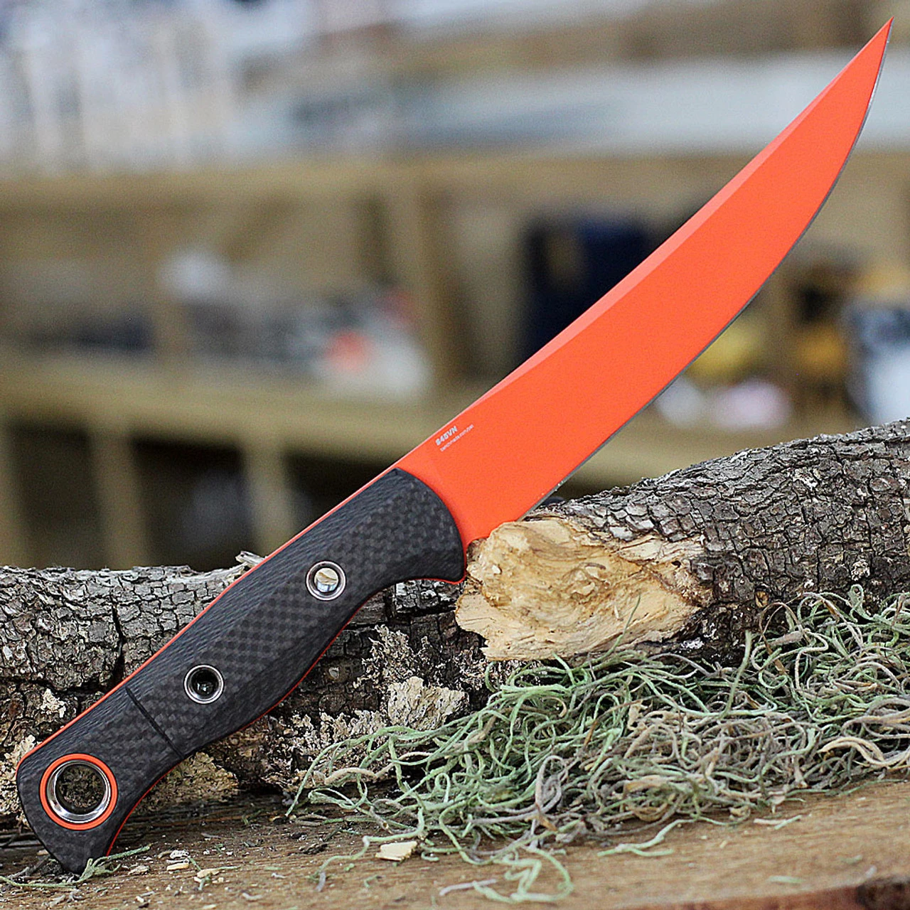 - Carbon fiber handle scales over a full tang.