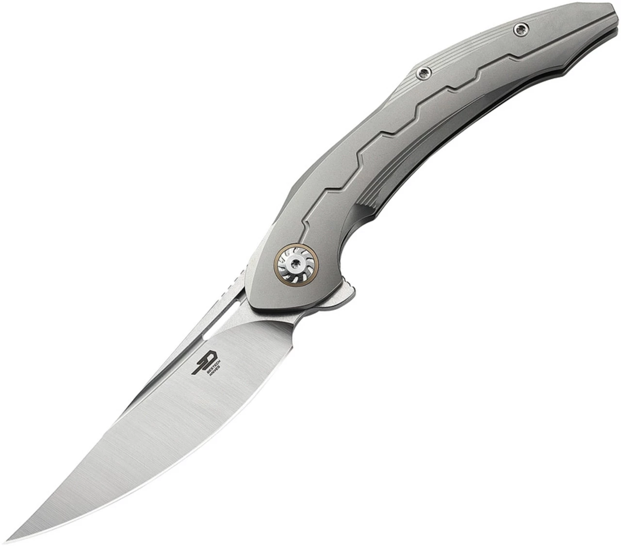 Bestech Marukka (BT2002A) – 3.6″ M390 Satin Trailing Point Blade, Gray Milled Titanium HandleÂ