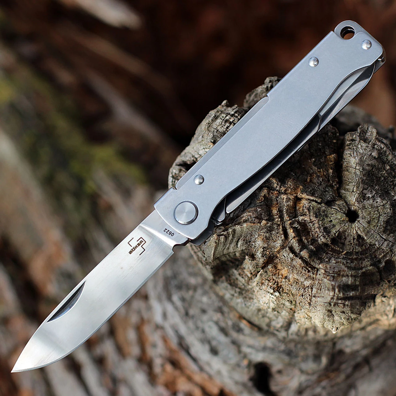 This no-frills teel handle body complete with satin finish. The minimalist constuction makes the Boker Plus Atlas is a reliable slip joint pocket knife with a sleek Stainliess sruction is extremely robust and makes this handy knife the perfect companion in all situations. The satin finished drop point blade, made of 12C27 steel, is opened by nail nick and can easily handle any daily and cutting task