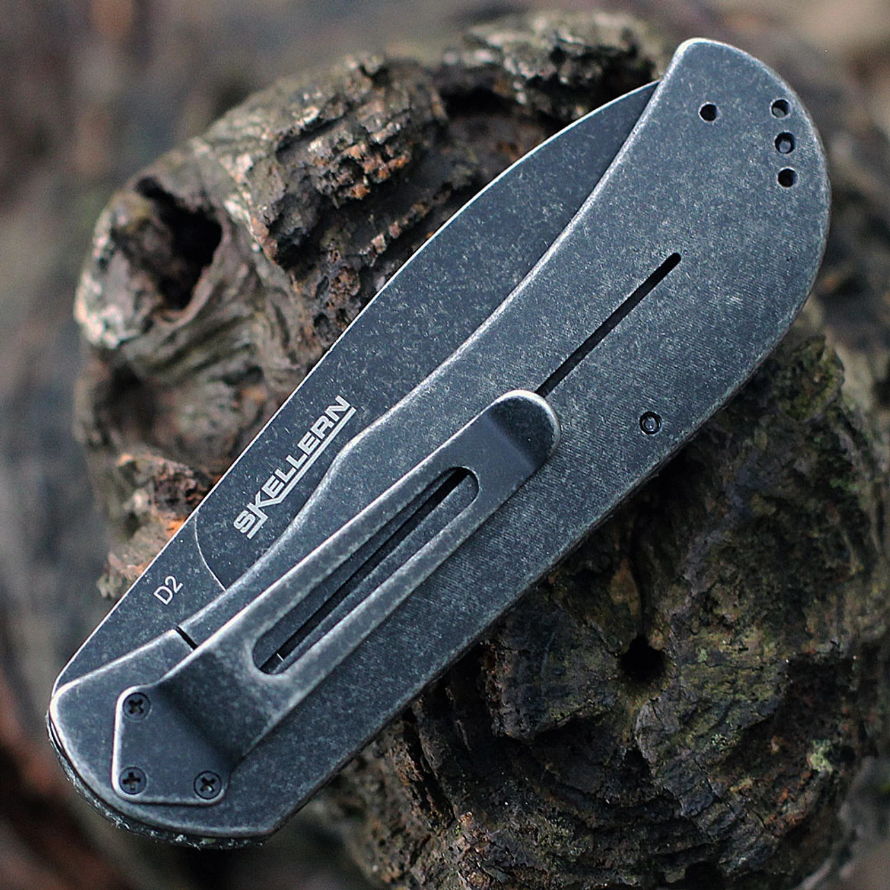 Exskelibur by Mike Skellern, the knifemaker from South Africa has established one of the most successful and popular series in the Boker Plus range. The textured front scales are made of olive green micarta stainless steel framelock. It is opened by nail nick with a reliably locked by the sturdy stonewash framelock.. Supplied with a convertible clip (tip-up/tip-down) and a high-quality nylon case for storage.Â
