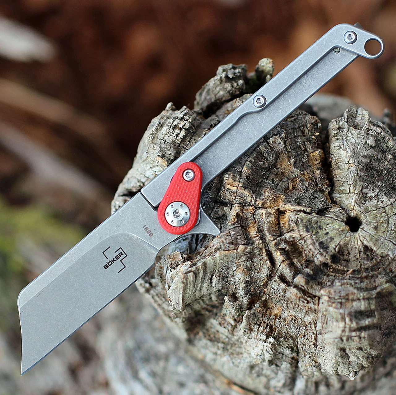 Boker Plus Fragment G10 Slim Joint (01BO661) – 1.97″ 440C Stonewashed Modified Sheepsfoot Blade, Red G10Â Minimalist Bar
