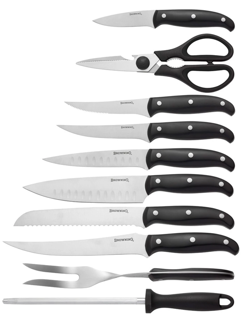 Browning Kitchen Cutlery Set (3220216) Black Pakkawood Handles, German Stainless Steel Blades