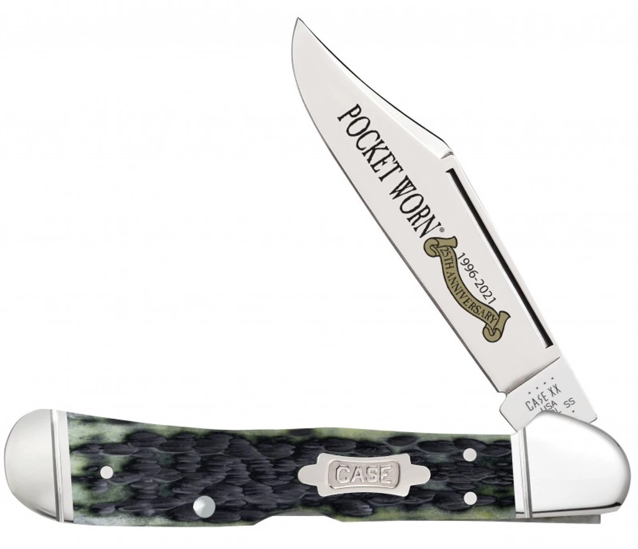 25 Years and Counting. Case knives have always been prized for their quality and detail, but when Case introduced the Pocket Worn® finish in 1996, it raised the hand finishing process to a new level. Today Case invites you to celebrate the 25th anniversary of Pocket Worn® Case knives with the new Olive Green Bone series. Eight patterns make up the entire set, available individually or as a commemorative Mint Set with specially decorated handles, blade serialization and more.
