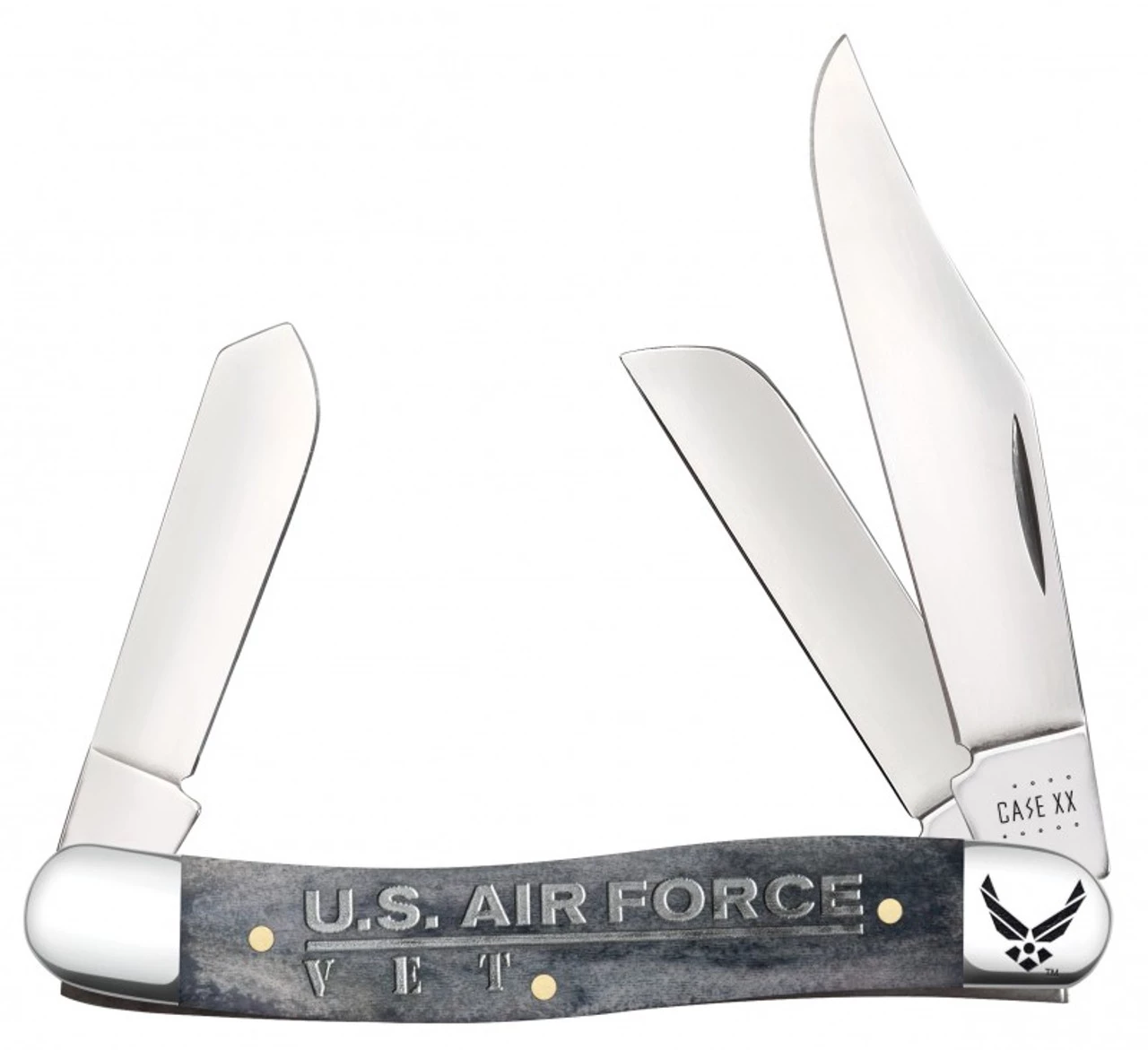 Case Medium Stockman 32405 U.S. Air Force Veteran Embellished Smooth Gray Bone Handle (6347 SS)