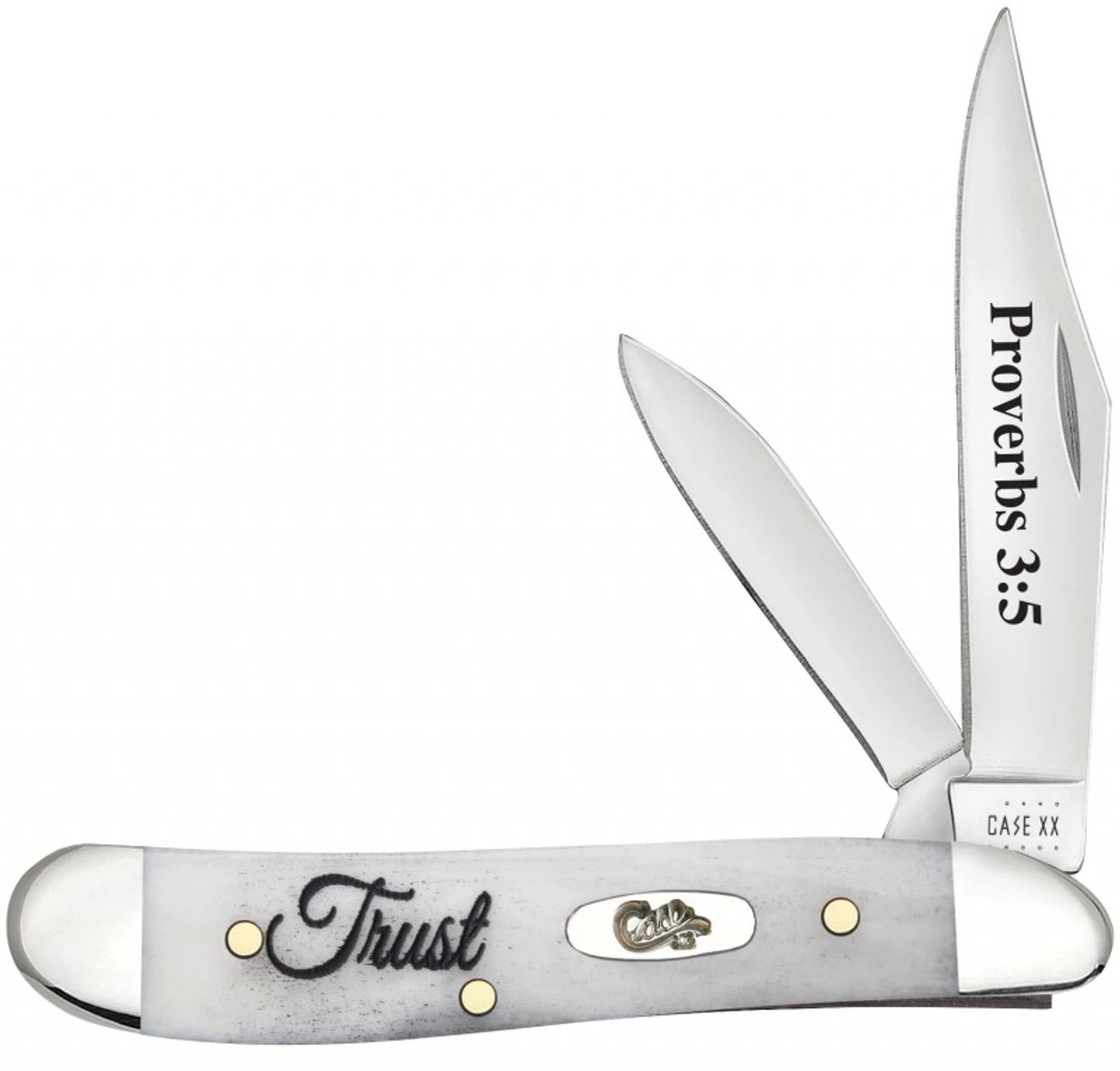 Case Peanut Religious Sayings – Proverbs 3:5 – 60867 Embellished Smooth Natural Bone Handle (6220 SS)