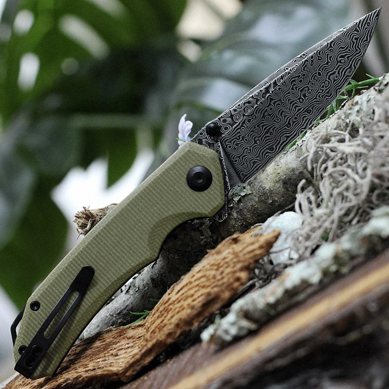 CIVIVI Brazen Flipper Knife C2102DS-2, 3.46″ Damascus Blade, Olive Micarta Handle