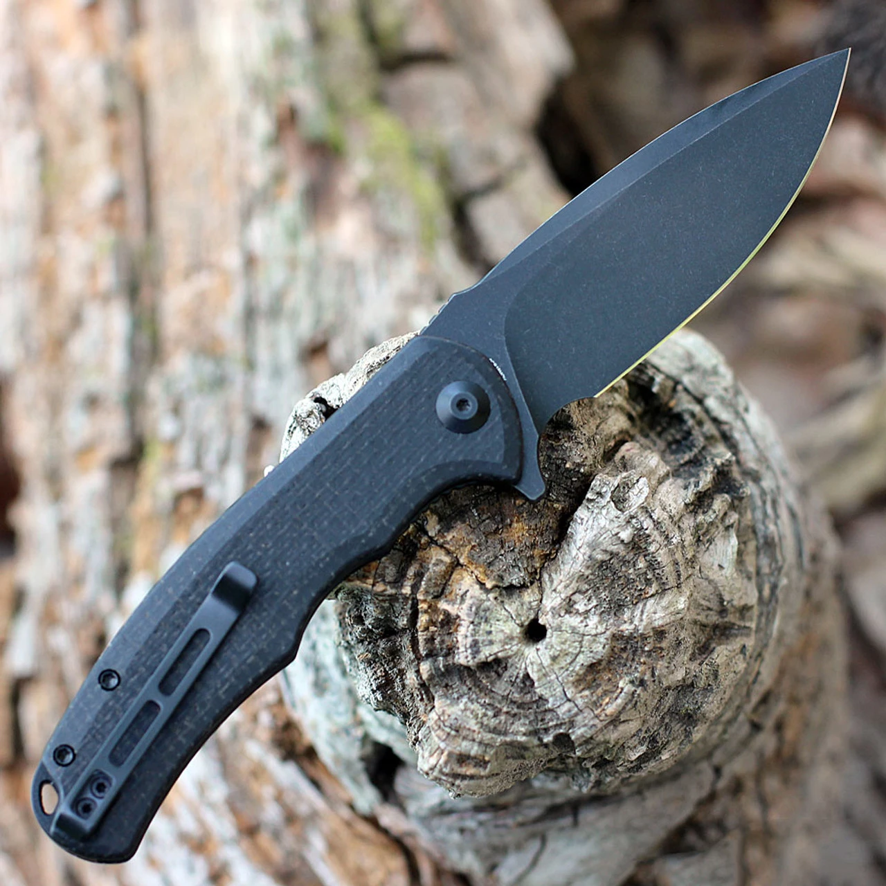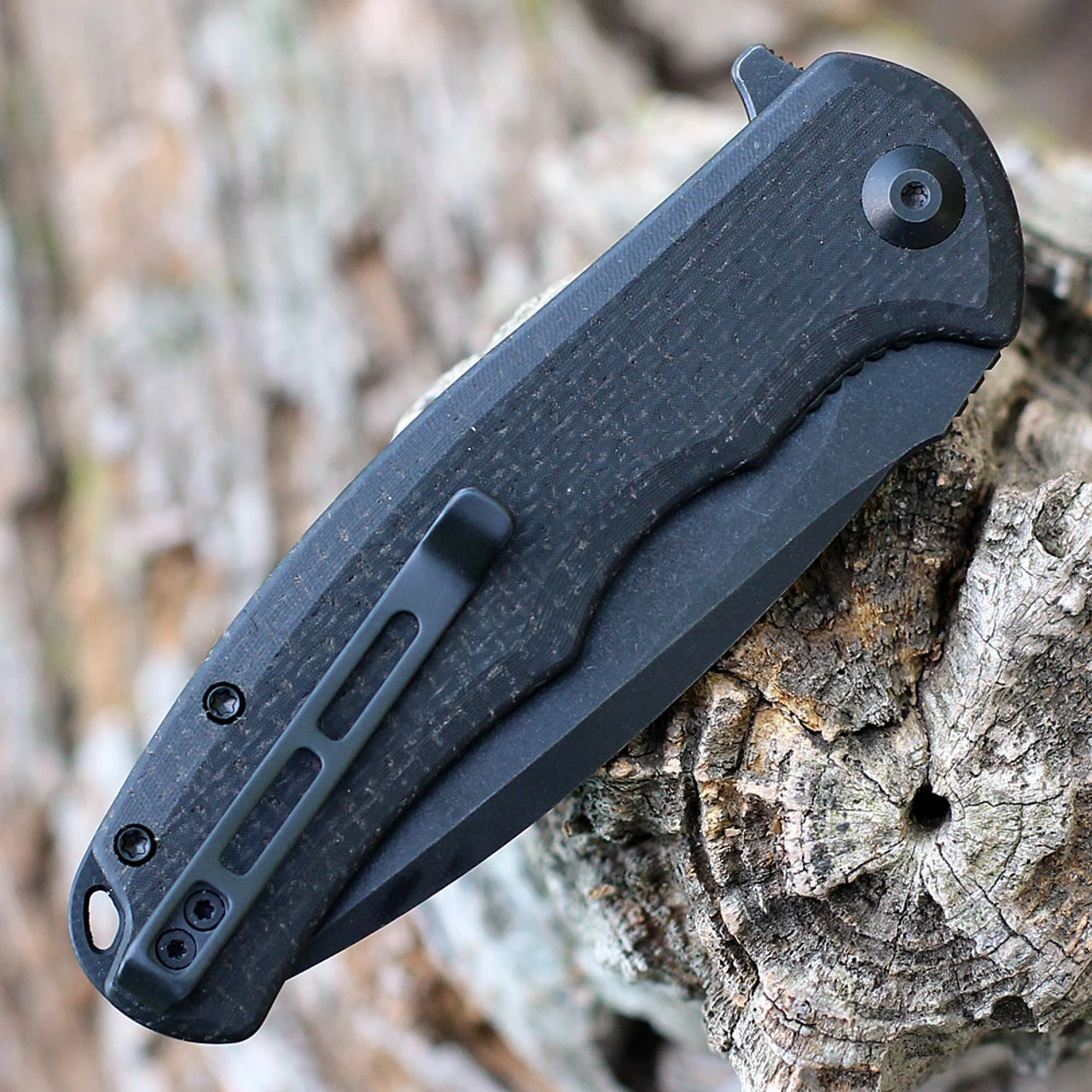 CIVIVI Praxis Flipper (C803G) – 3.74″ Black Stonewash 9Cr18Mov Drop Point Blade, Black Coarse Micarta Handle
