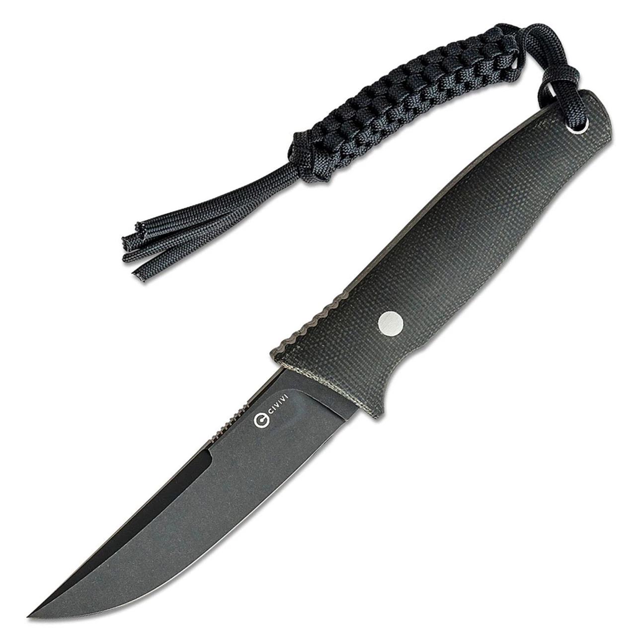CIVIVI Tamashii Fixed Blade (C19046-4) – 4.07″ D2 Black Stonewashed Drop Point Blade, Dark Green Micarta Handle with Blade Kydex Sheath – Bob Terzuola Design