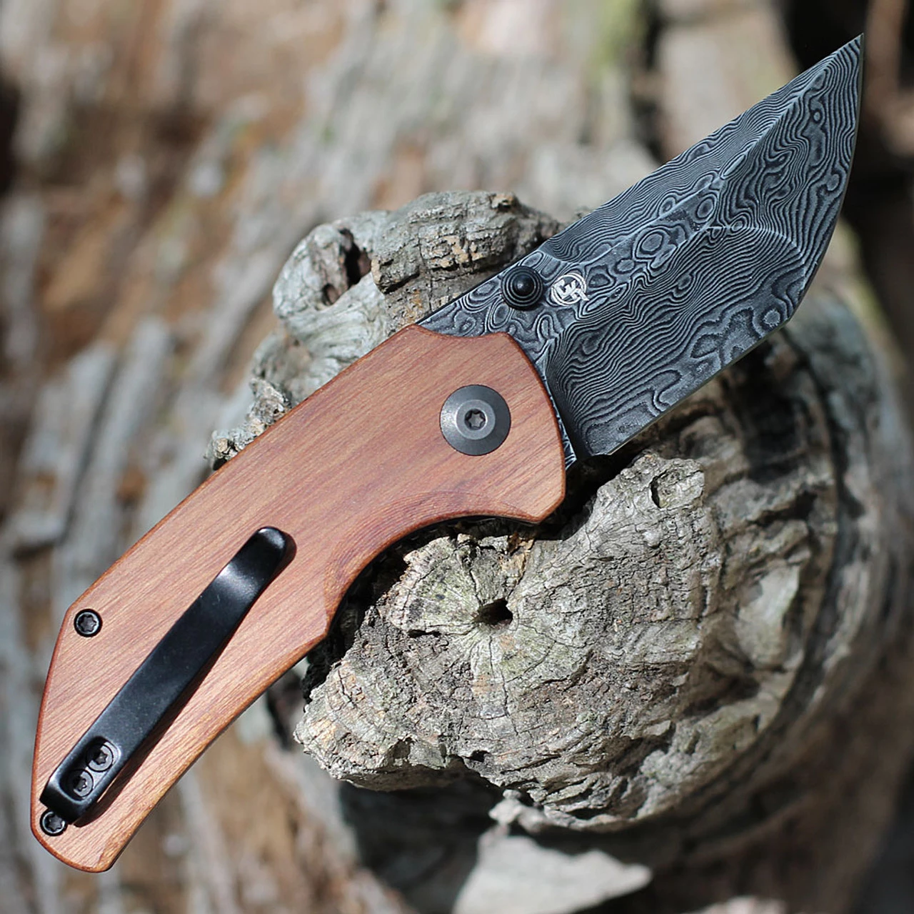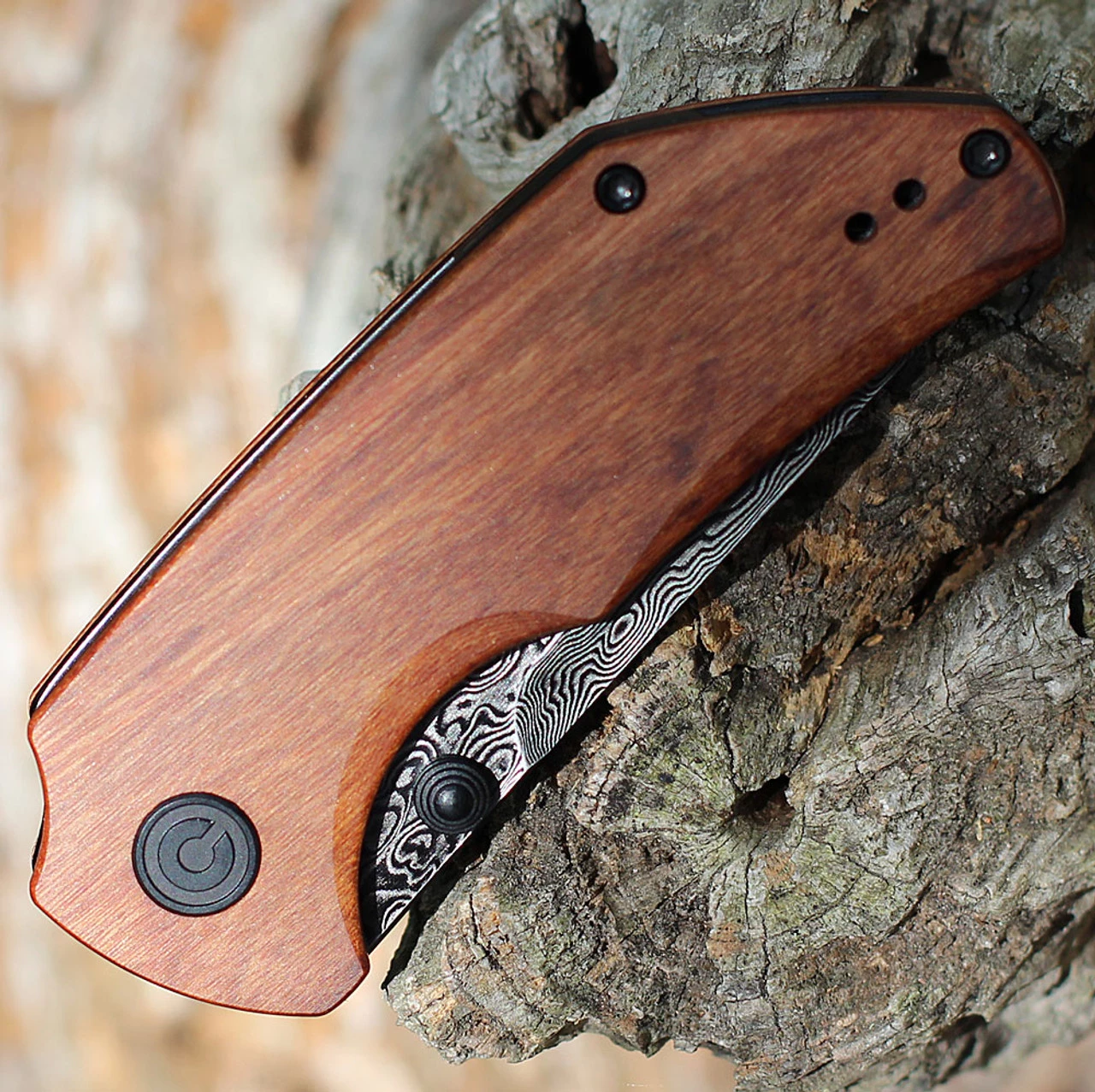 CIVIVI Thug 2 Frame Lock (CIVC20028CDS1) – 2.69″ Black Hand Rubbed Damascus Plain Blade, Cuibourtia Wood Handle
