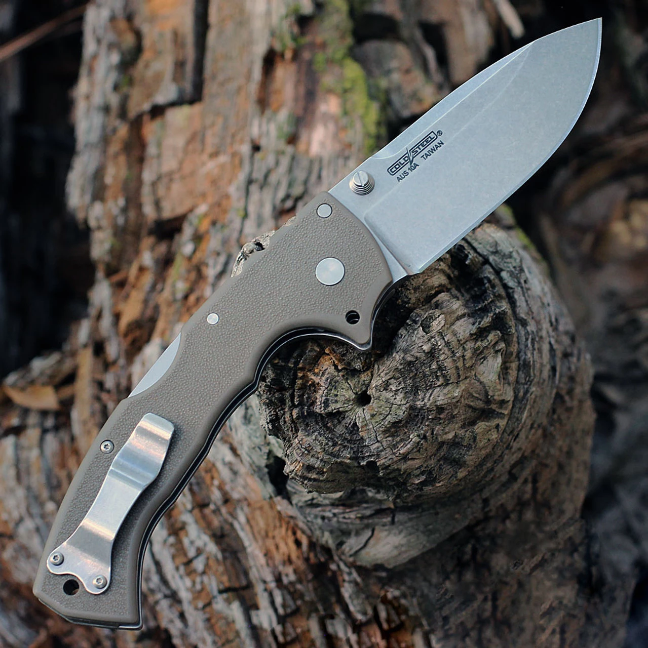 Cold Steel 4 Max Scout (CS62RQDTSW) – 4″ AUS-10A Stonewash Drop Point Blade, Desert Tan Grive-Ex Handle w/ Tri-Ad lock