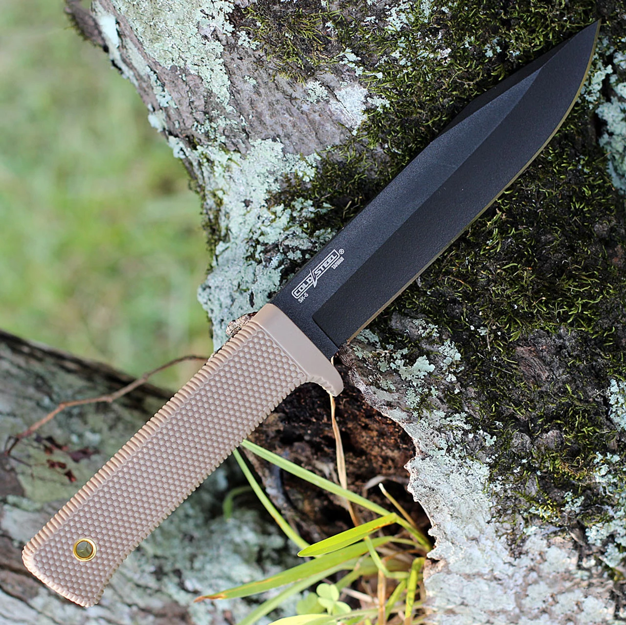Cold Steel SRK Fixed ( CS49LCKDTBK) – 6″ SK-5 Black Coated Clip Point Blade, Desert Tan Kray-Ex Handle w/Secure Ex Sheath
