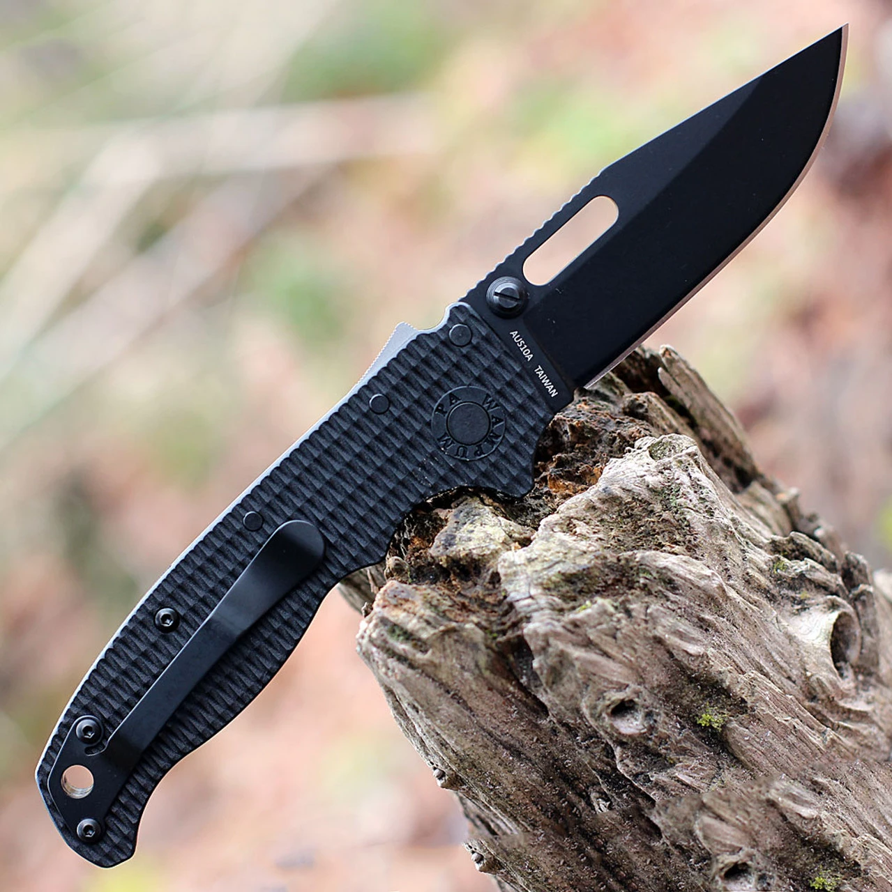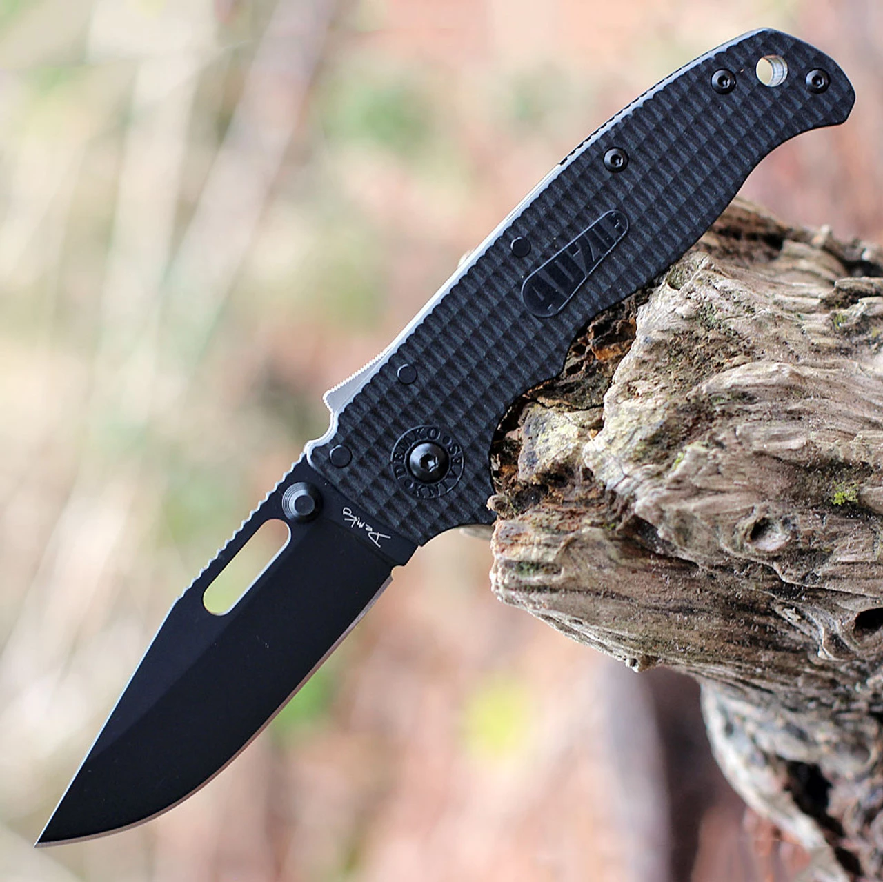 Demko AD20.5 Shark Lock – 3.25″ AUS-10A Black Clip Point Blade, Black Textured Grivory Handle