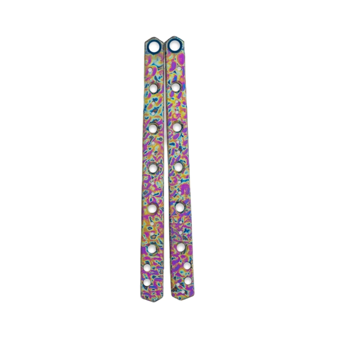 Balisongs are meant to be exciting, dynamic, and loud! This Flytanium Limited Edition is all that and more with its unique Kaleidoscope pattern. No two sets of Kaleidoscope Ti Lucha Handles are alike making each one truly one-of-a-kind! We painstakingly anodized each one using a special process and we’re stoked with how they turned out. These won’t last long. Don’t miss out!