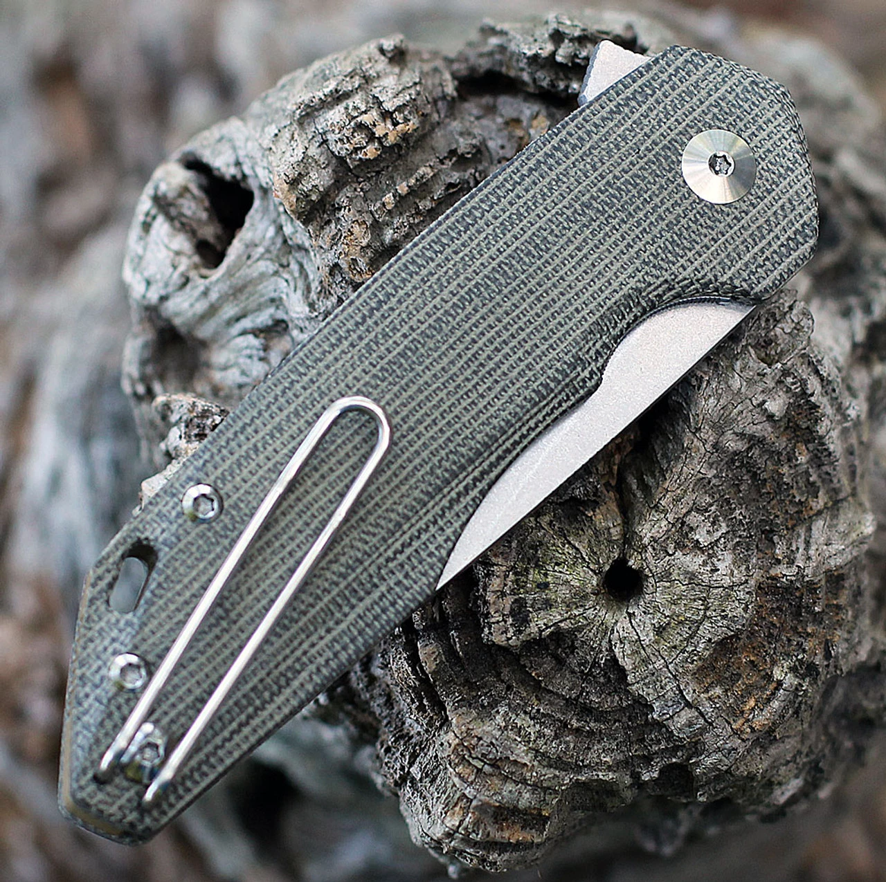 GiantMouse ACE Corta (CORTA-GRN-CANVAS) – 3.0″ Bohler M390 Stonewashed Drop Point Blade, Green Canvas Micarta HandleÂ