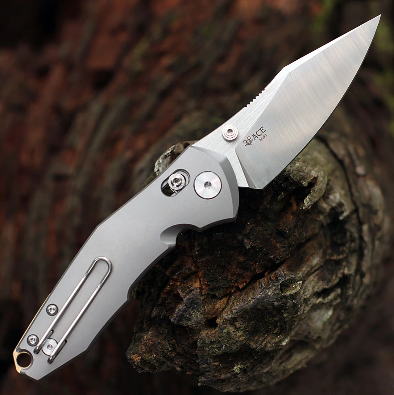 GiantMouse ACE NAZCA-Titanium -3.15in Böhler M390 MICROCLEAN Satin PlainEdge, Titanium Handle