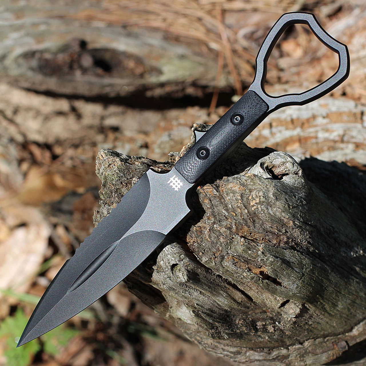 Halfbreed CCK-01 Compact Clearance Fixed Blade Knife (CCK-01) – 3.94″ D2 Black Teflon Coated Partially Serrated Spear Point Blade, Black Contoured G-10 Handle w/ Injection Molded Single Column PALS/MOLLE Compatible Sheath