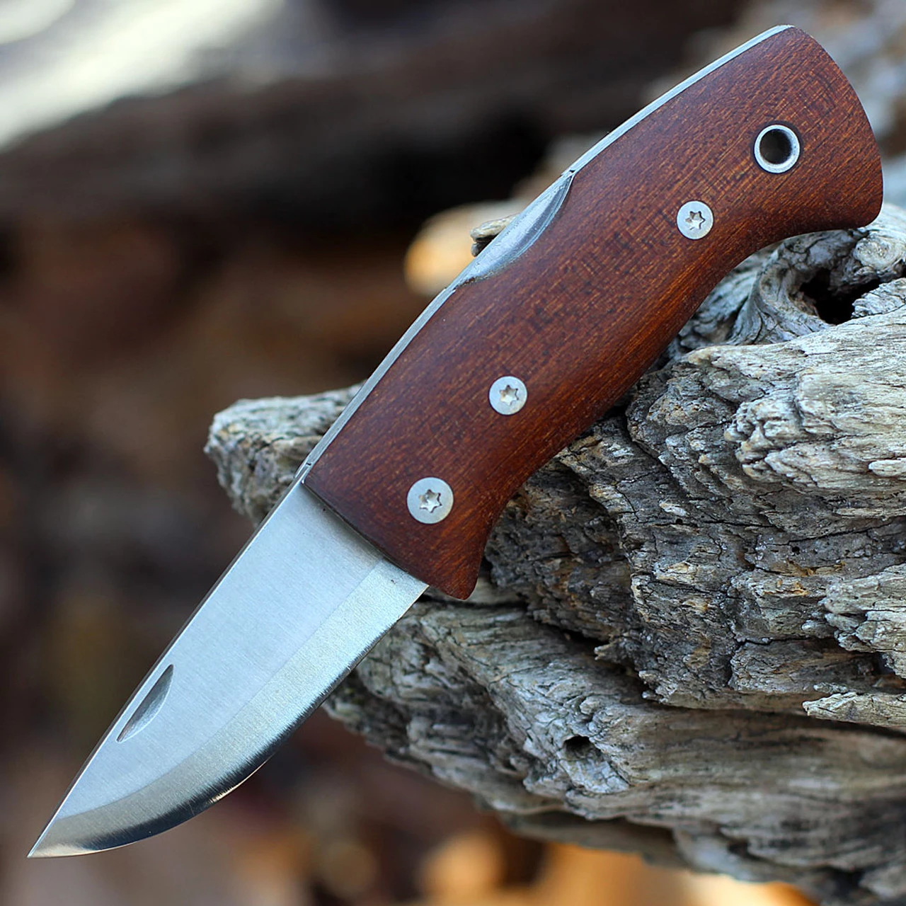 Helle Kletten Folder (662K) – 2.16″ Triple Laminated Stainless Steel Satin Drop Point Blade, Brown Kebony Wood HandleÂ