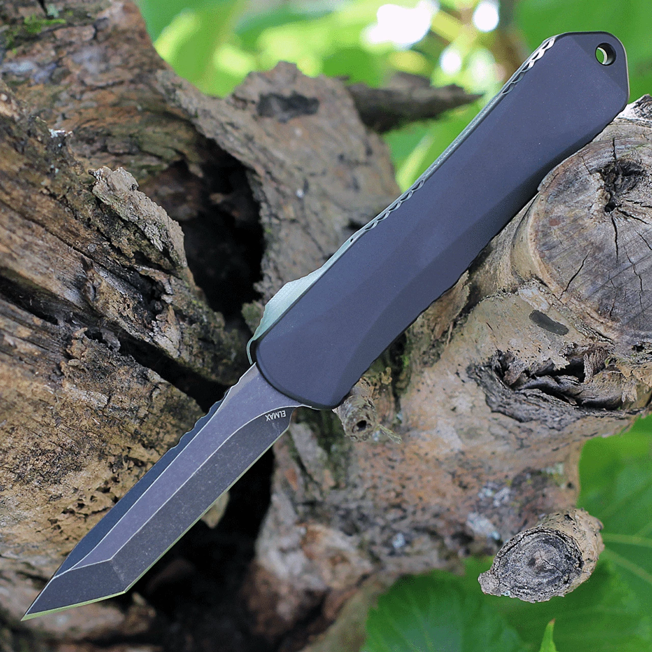 The Manticore E is a double action out-the-front (OTF) automatic knife, the blade can be deploued and retracted with one hand. The knife’s smooth action starts with a stepped thumb slide so you are able to fire the blade with confidence. Elegant sweeping lines and jimping down the length of the handle add depth to an otherwise smooth body. A hardened steel glass breaker rounds out the handle.