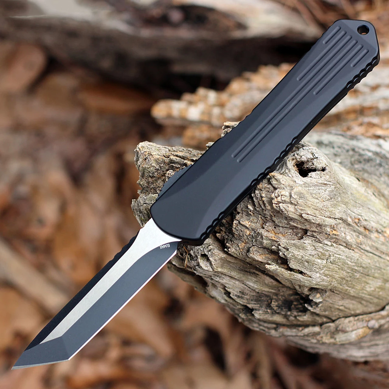 Heretic Manticore X OTF Double Action Automatic (H031-10A-T) – 3.7″ ELMAX Two-Tone Black Tanto Blade, Black Aluminum Handle, Black Hardware