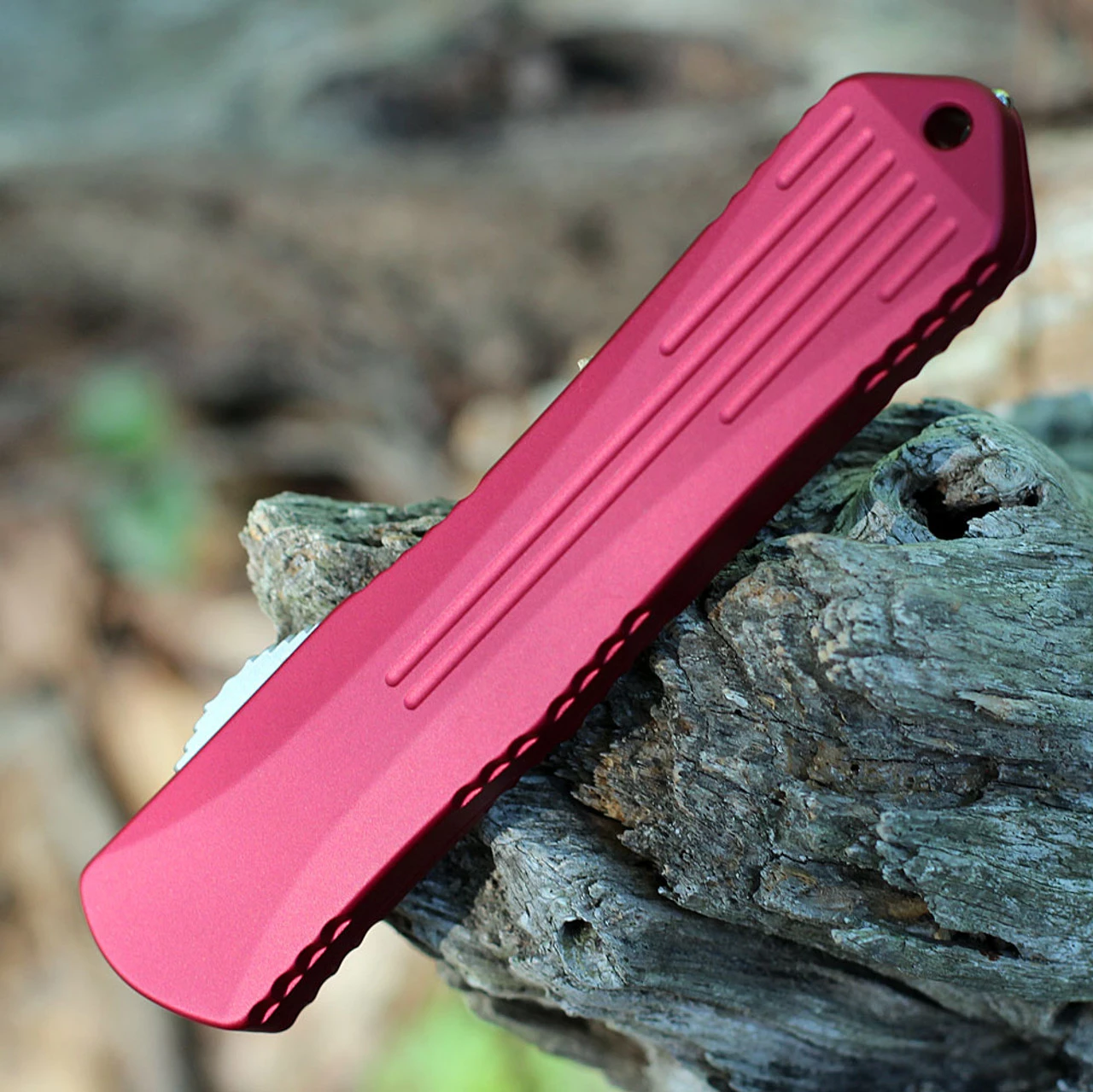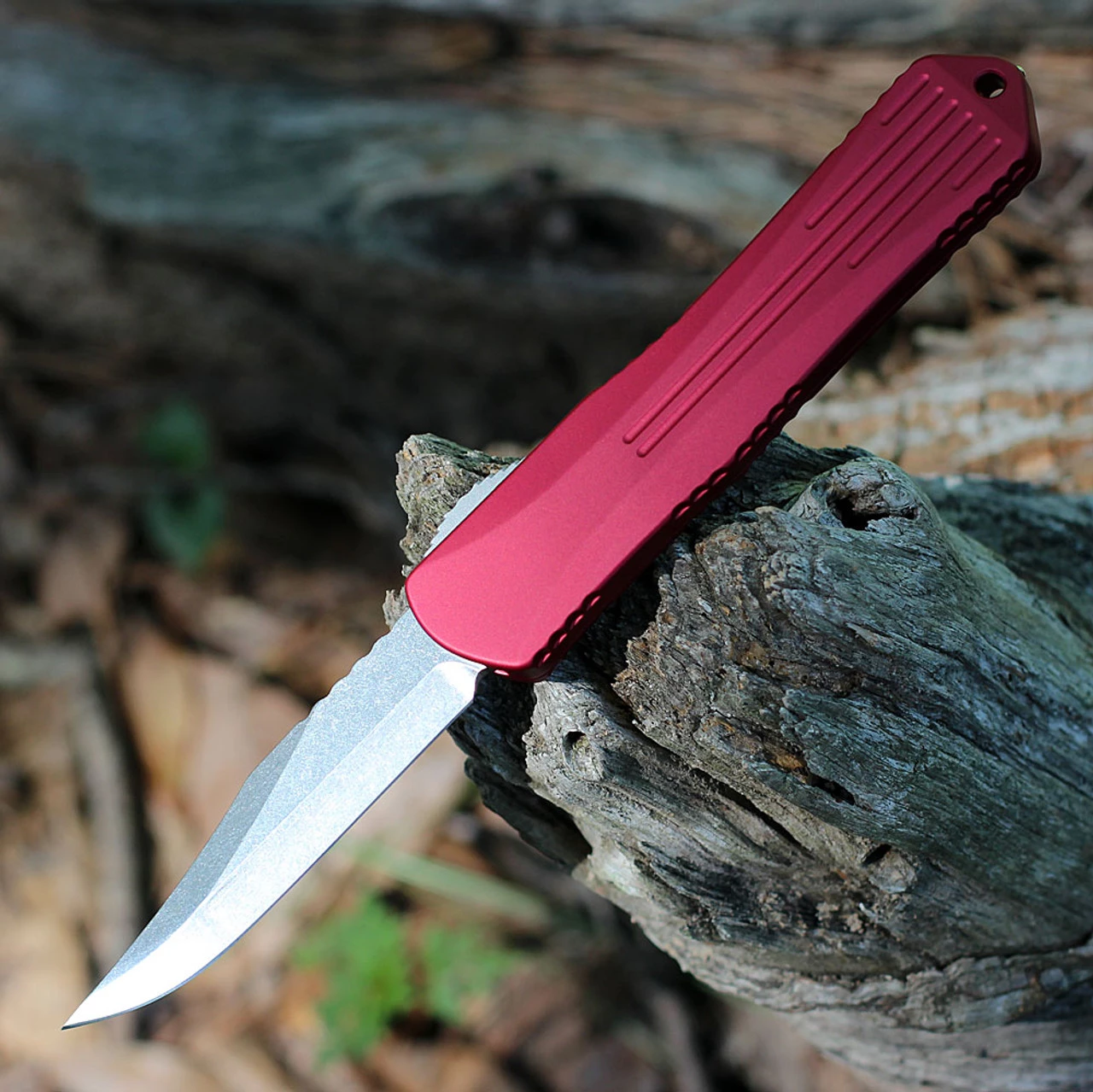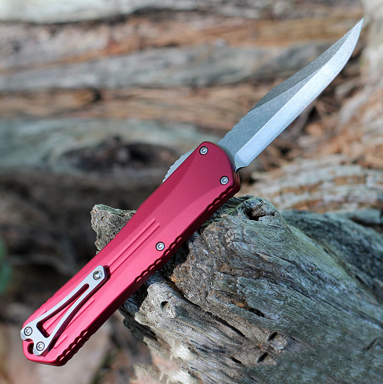 Heretic Knives Manticore X OTF Automatic (HO30B-2A-RED) – 3.75″ Bowie Stonewash Blade, Red Aluminum Handle