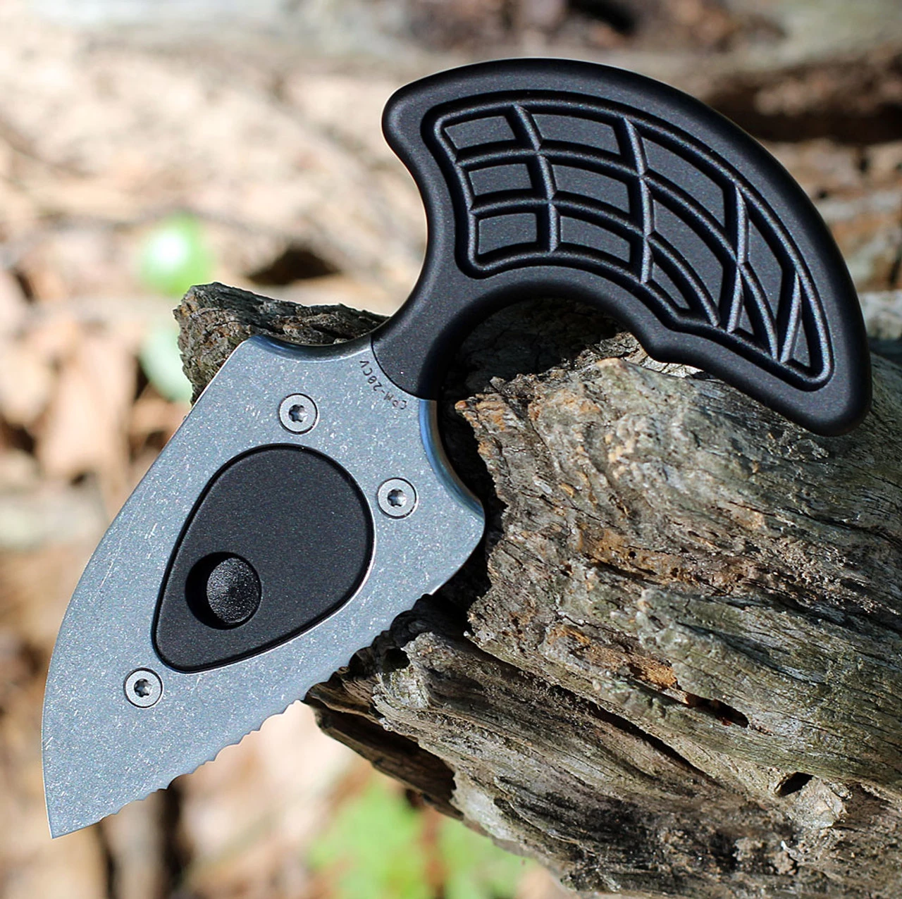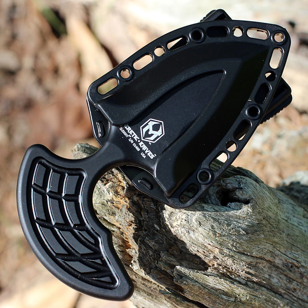 Heretic Knives Sleight Push Dagger (H050-2C) – 2.8″ CPM-20CV Stonewash Serrated Double Edge Dagger, Black Anodized Aluminum Handle, Black Kydex Sheath with Tek-Lok