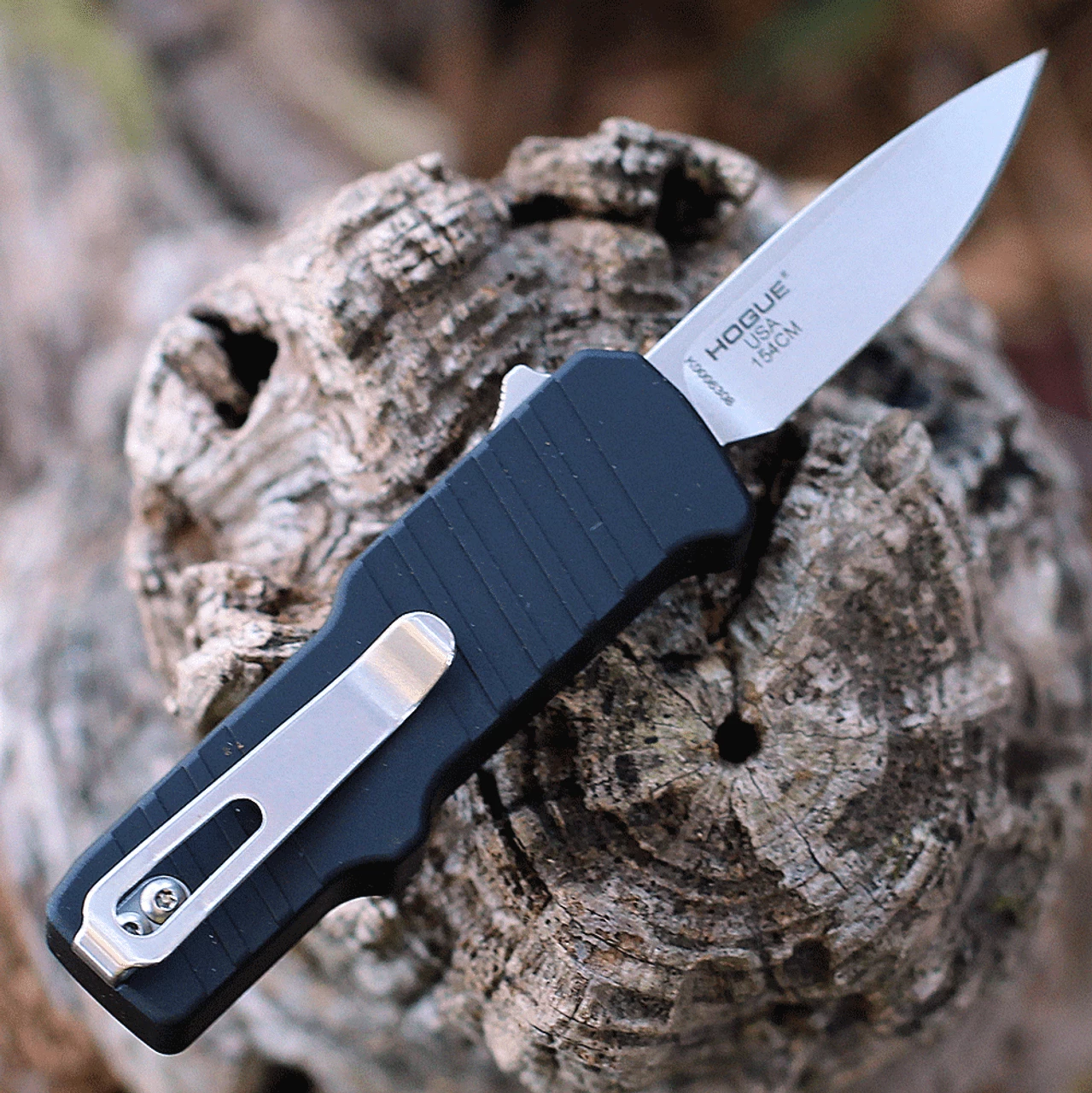 HK Micro Incursion OTF Automatic (54030) – 1.95″ 154CM Clip Point Stonewashed Blade, Black Aluminum Handle