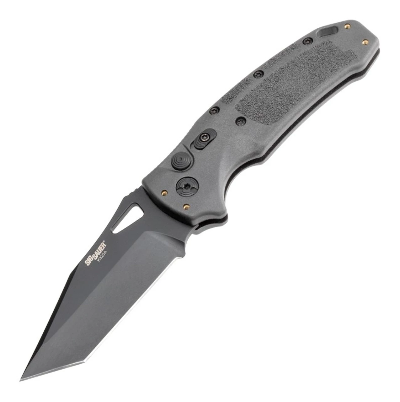 SIG Sauer K320A Tactical Automatic Folder By Hogue (SIG36322) – 3.50″ CPM-S30V Black Cherakote Tanto Blade, Grey Polymer Handles