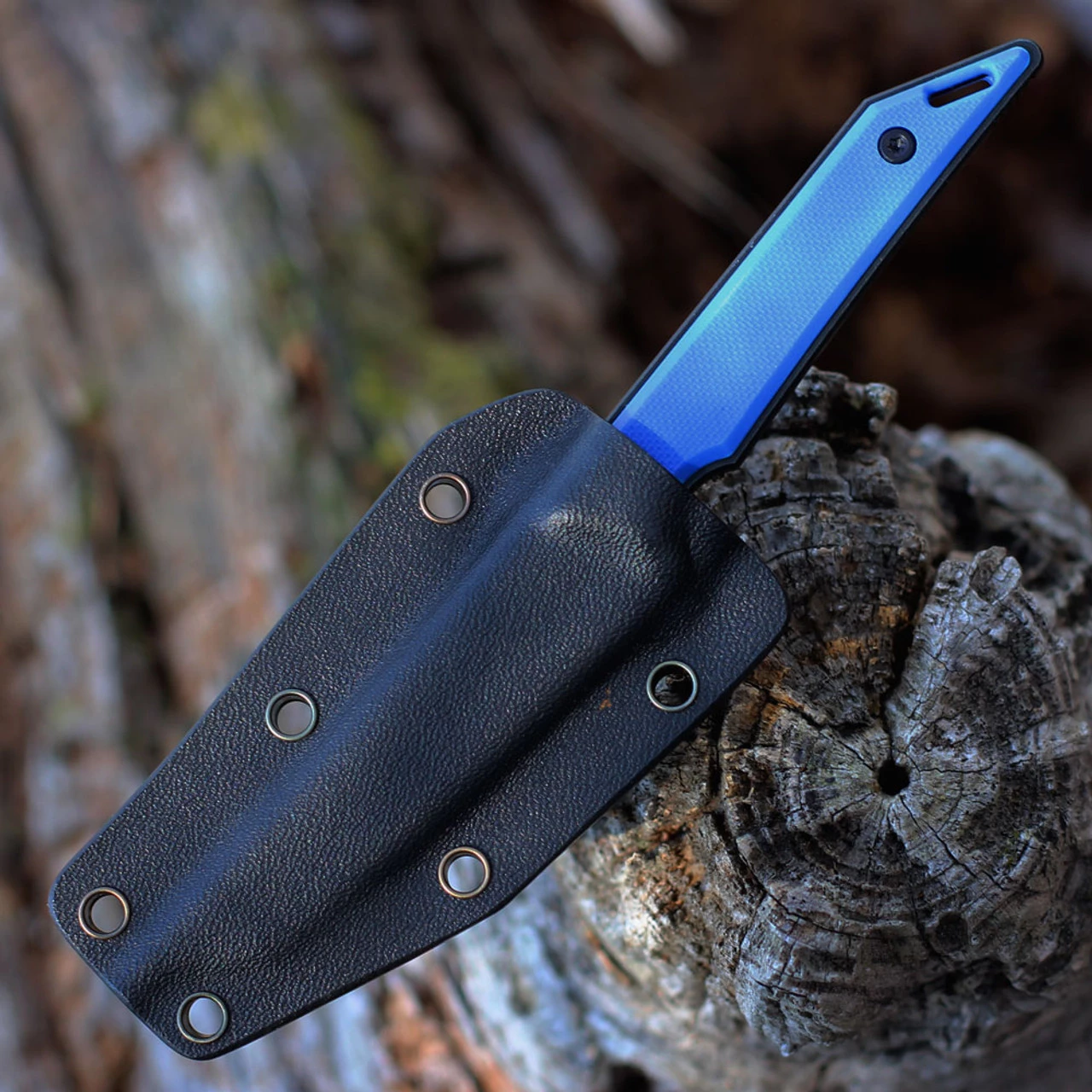 Jake Hoback Goliath Pocket Fixed Blade – 3.25″ CPM-20CV Black Tanto Blade, Textured Blue G10 Handle, Black Kydex Sheath with Pocket Clip