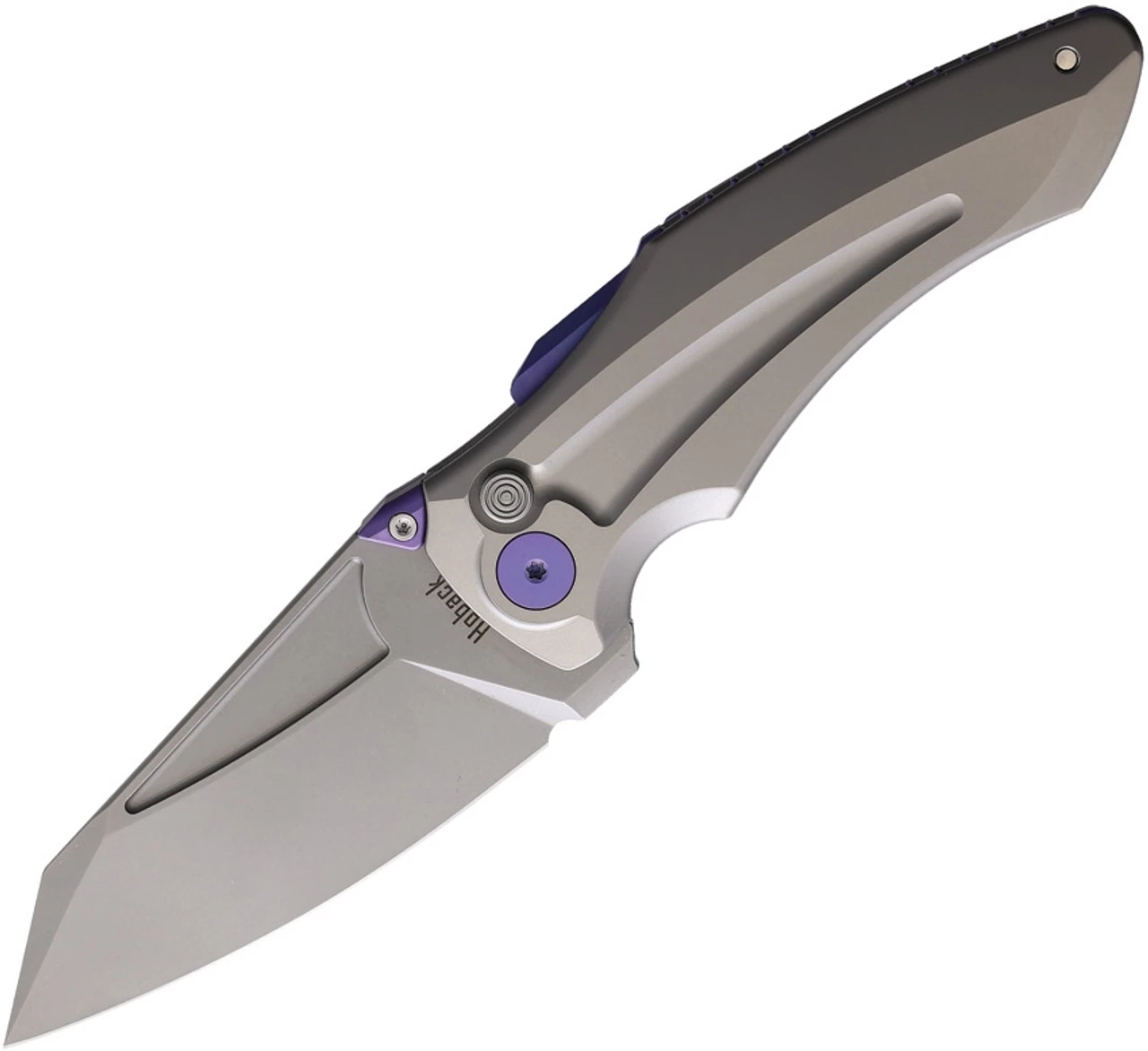 Jake Hoback Sumo Button Lock – (3.25″ CPM-20CV Bead Blast, Stonewashed Blade, Gray Titanium Handle with Purple Accents