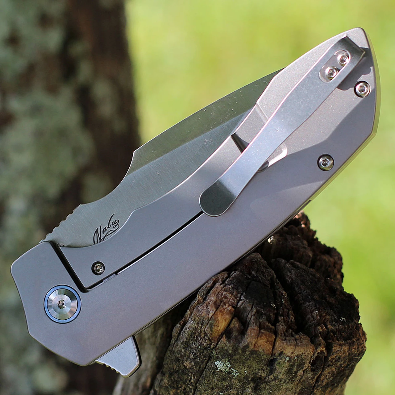 Kansept Entity Flipper ( K1036A1) – 3.52″ CPM S35VN Satin Drop Point Blade, Machine Holed Bead Blasted Titanium Handle