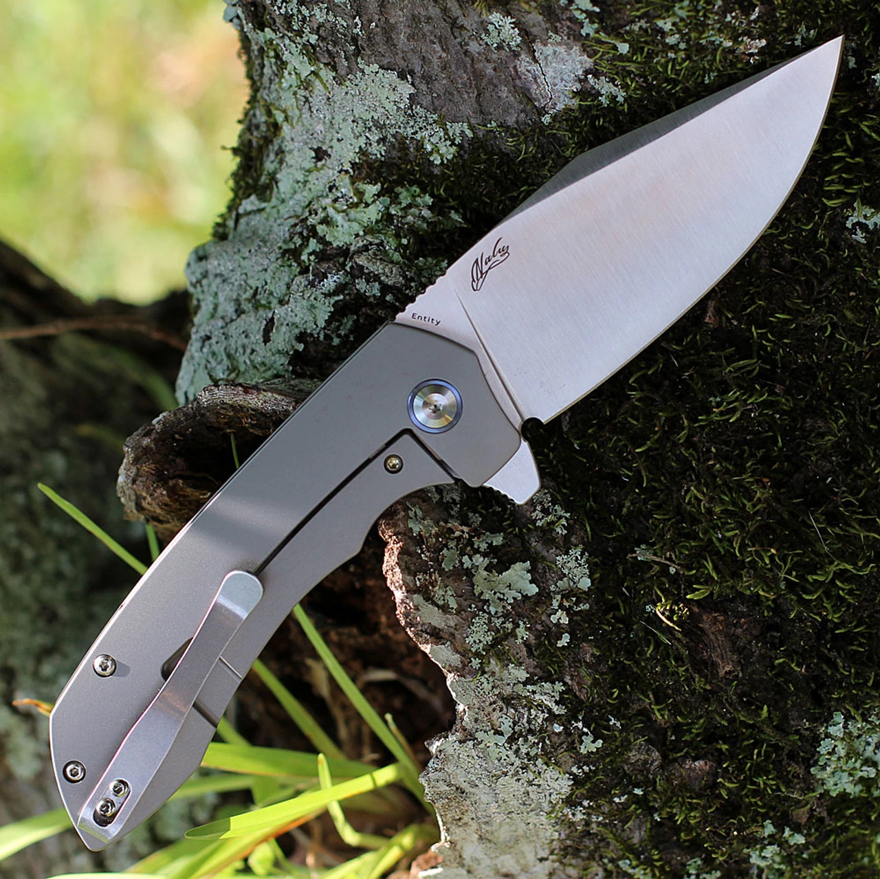 Kansept Entity Flipper ( K1036B1) – 3.52″ CPM S35VN Satin Clip Point Blade, Machine Holed Bead Blasted Titanium Handle