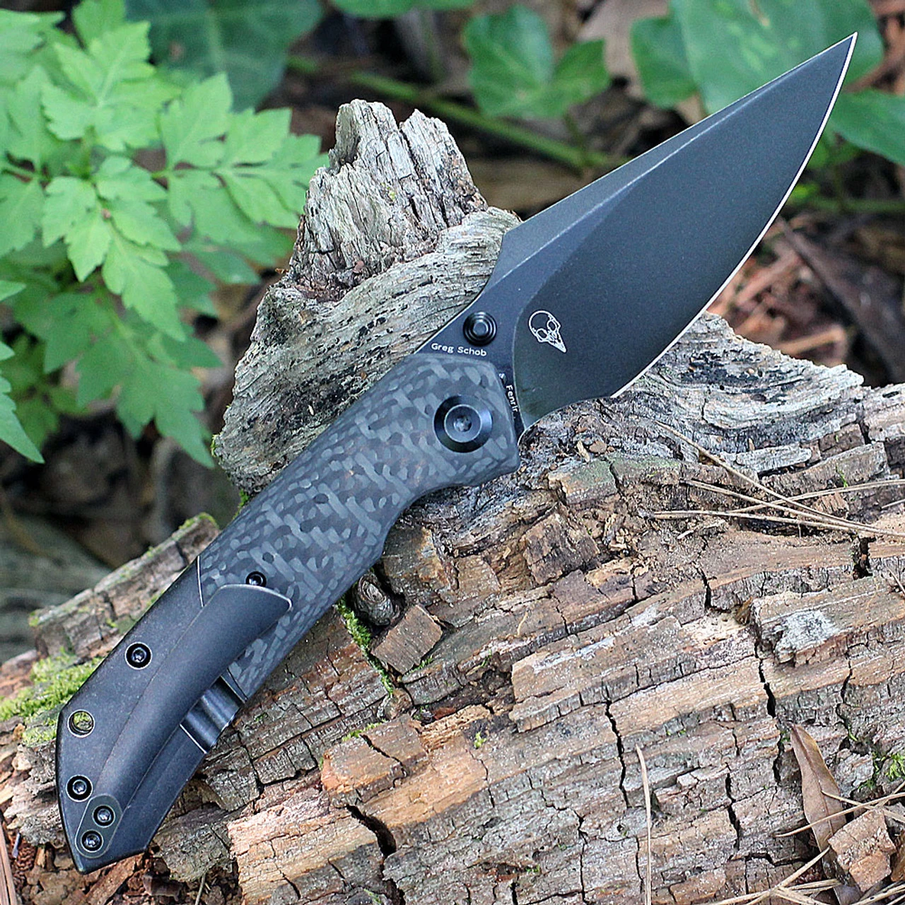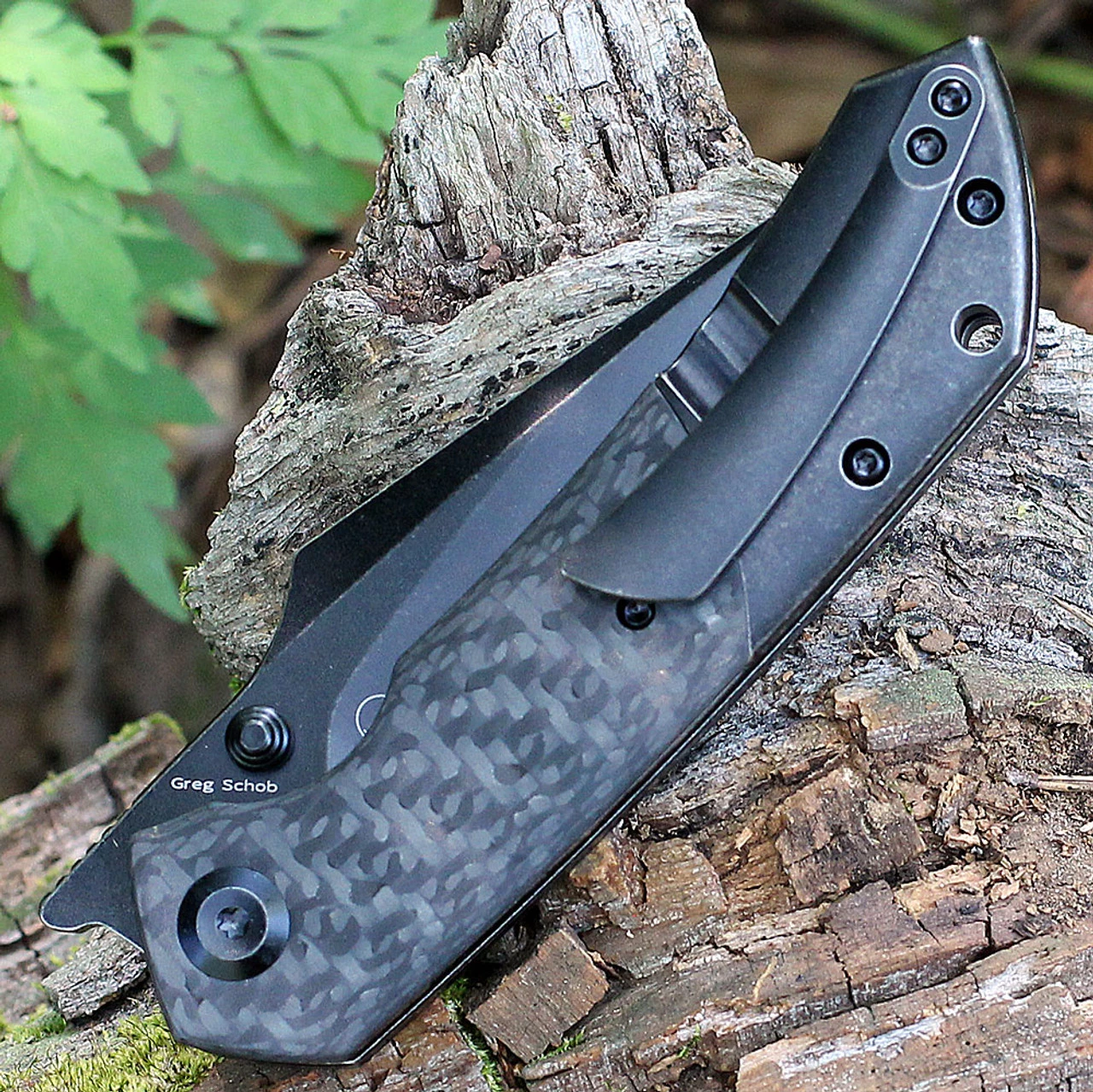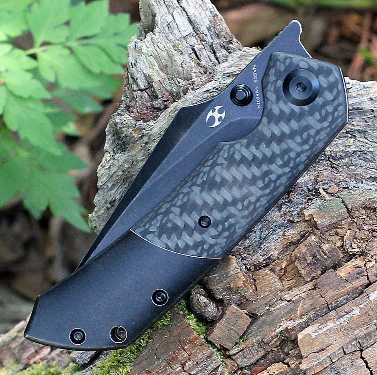 - Twill Carbon Fiber + Black TiCn Coated Titanium handle for a smooth gripping surface that is comfortable in the pocket or hand.