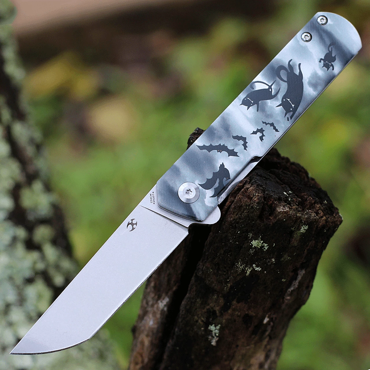 Kansept Knives Foosa Liner Lock (X2020T4) – 3″ 154CM Stonewashed Tanto Blade, Black G10 Handle with Phantom CatÂ