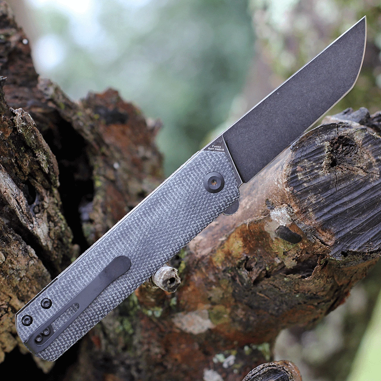 The Kansept Foosa knife is slim, slender, and discreet. The handle has a simple and natural design that accommodates any grip style, and a subtle tanto blade designed for EDC use.Â