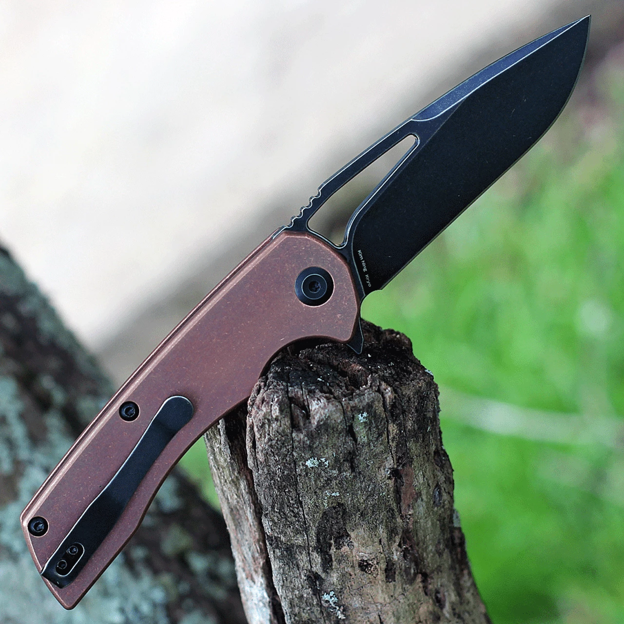 Kansept Knives Kryo K1001C2, 3.58″ CPM-S35VN Black Plain Blade, Copper Handle