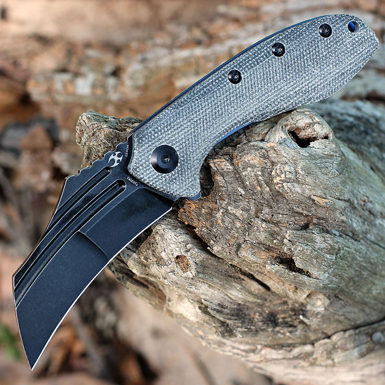 - Black TiCn Coated 154CM blade with excellent edge retention.
