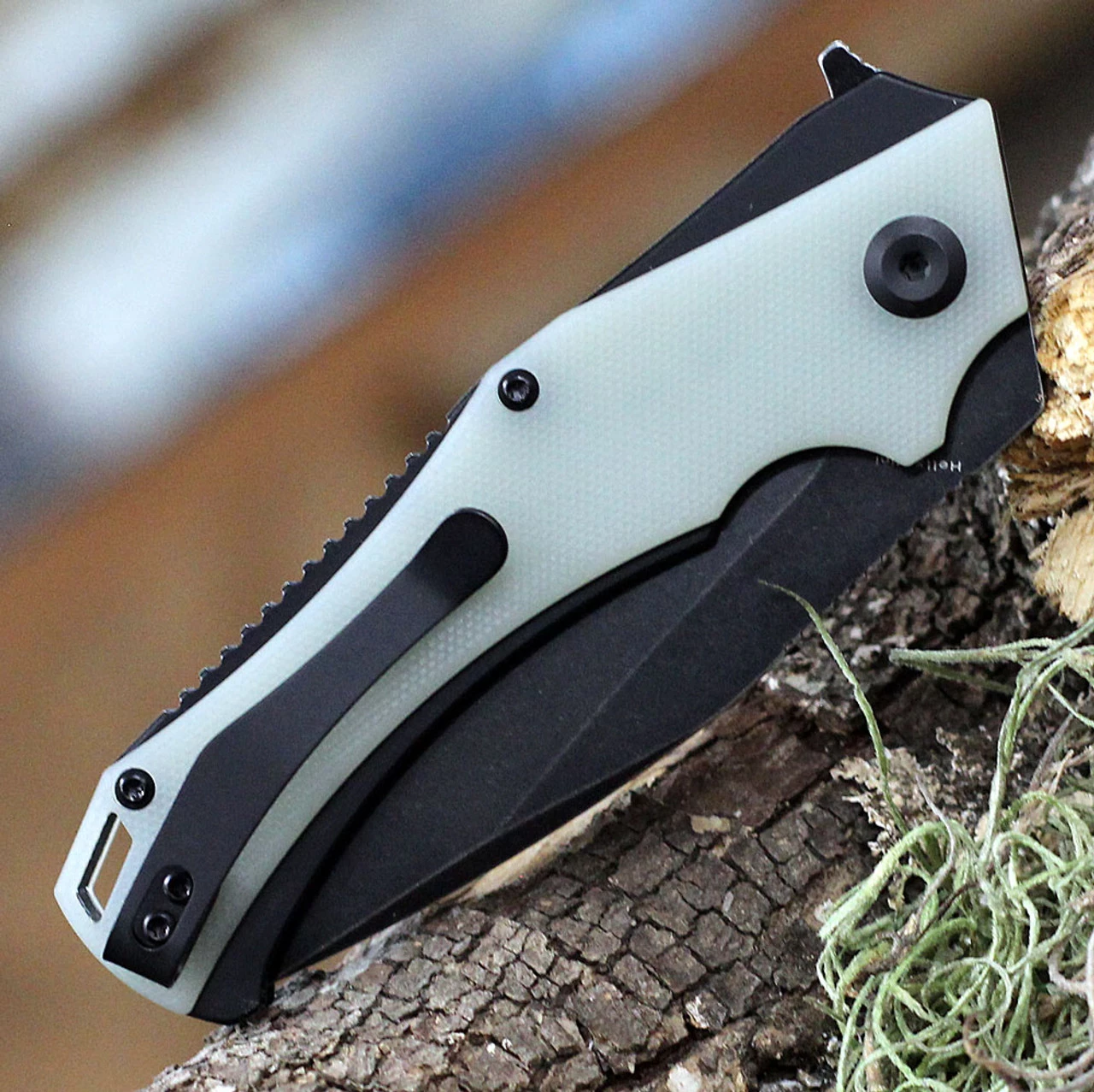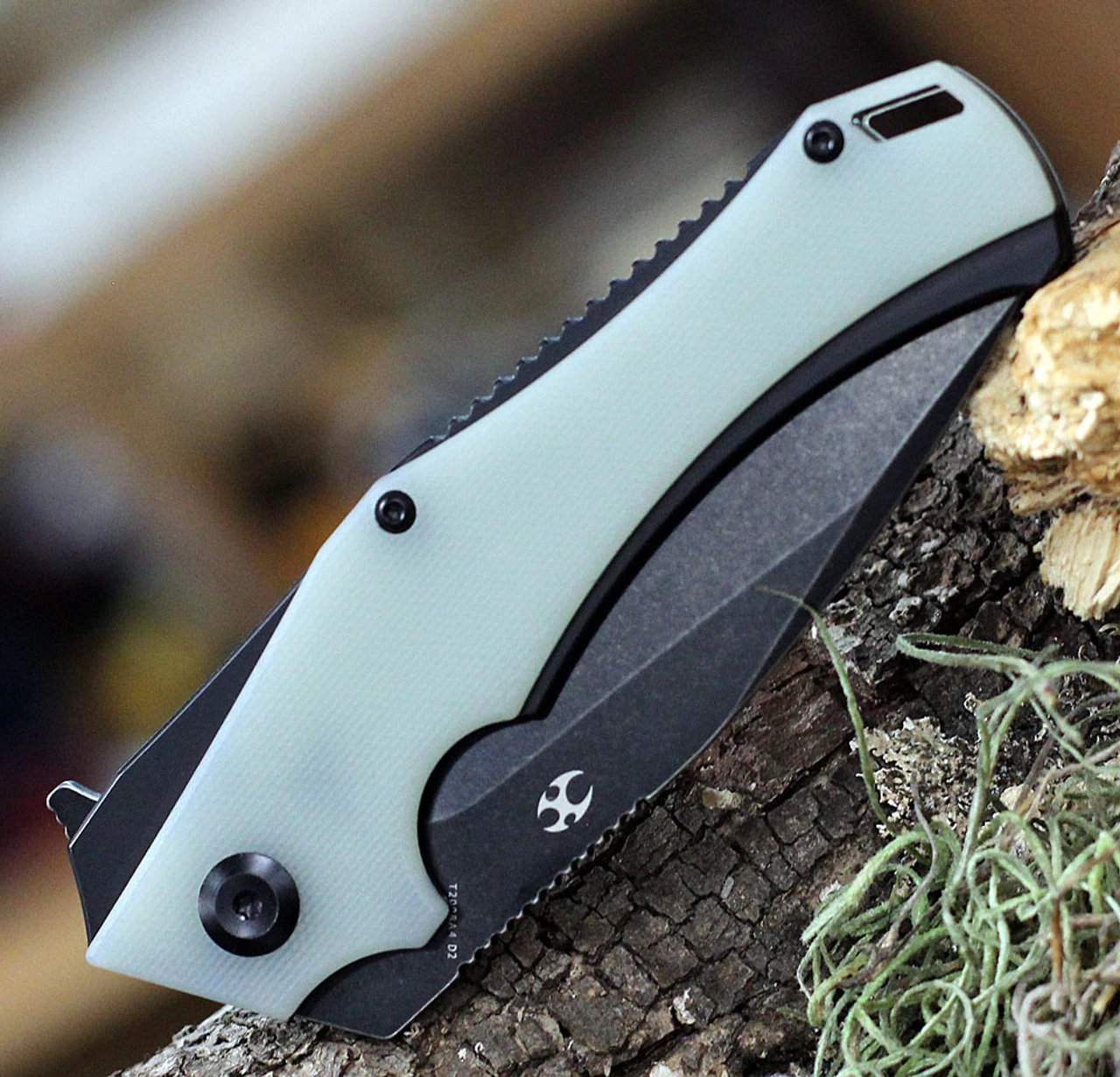 Kansept MINI Hellx Folding Knife (T2008A4) – 3.25″ D2 Black TiCn Coated Drop Point Blade, Jade G10 Scales, Black Stainless Steel Frame