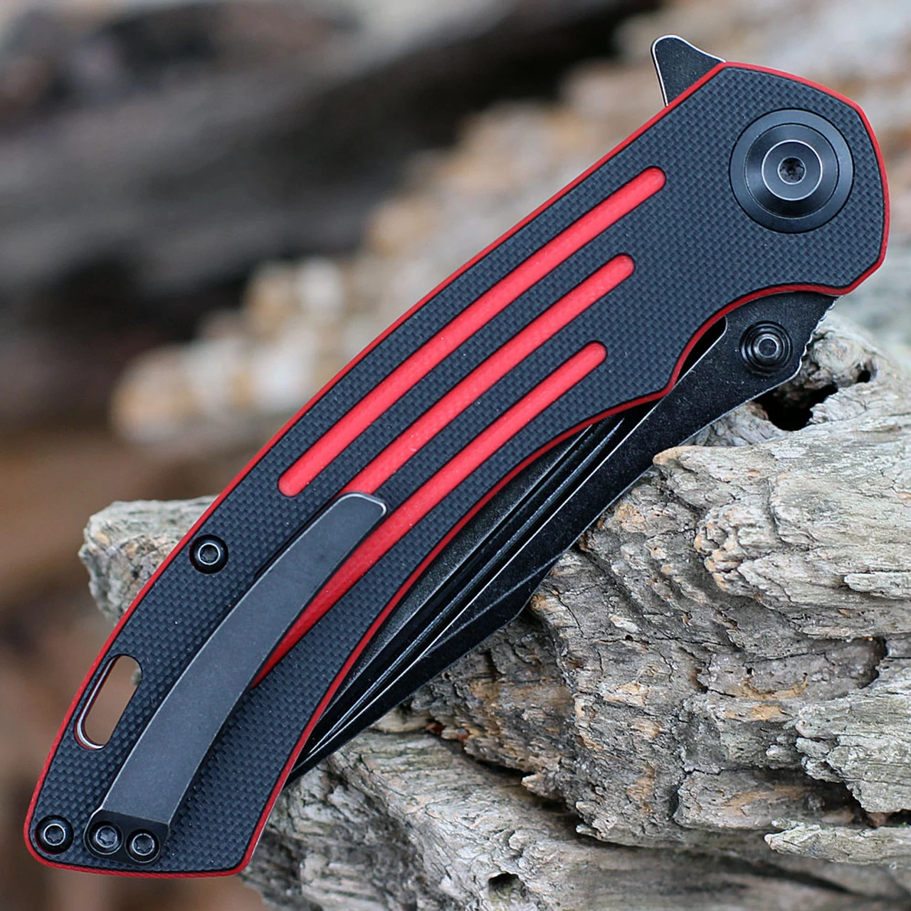 Kansept Pretatout Flipper (T1032A1) – 3.6″ 154CM Clip Point Blade, Black and Red G-10 HandleÂ