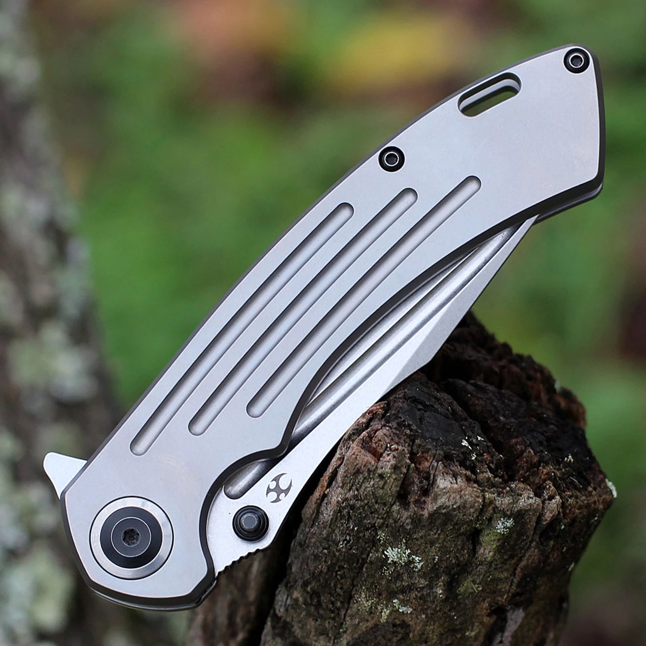 Kansept Pretatout folding knife – S35VN steel blade with gray titanium handle. 3.6 inch tanto point blade is sharp for all your daily chores.