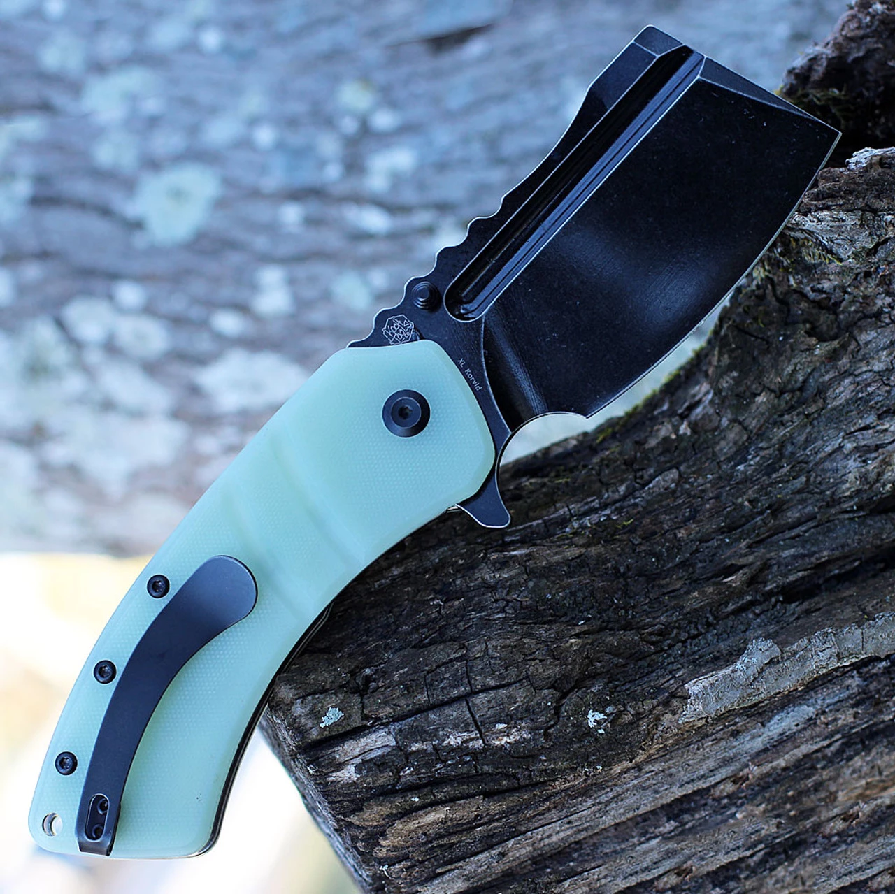 Kansept XL Korvid Flipper (T1030A3) – 3.55″ Black Stonewashed 154CM Cleaver Blade, Jade G10 Handle