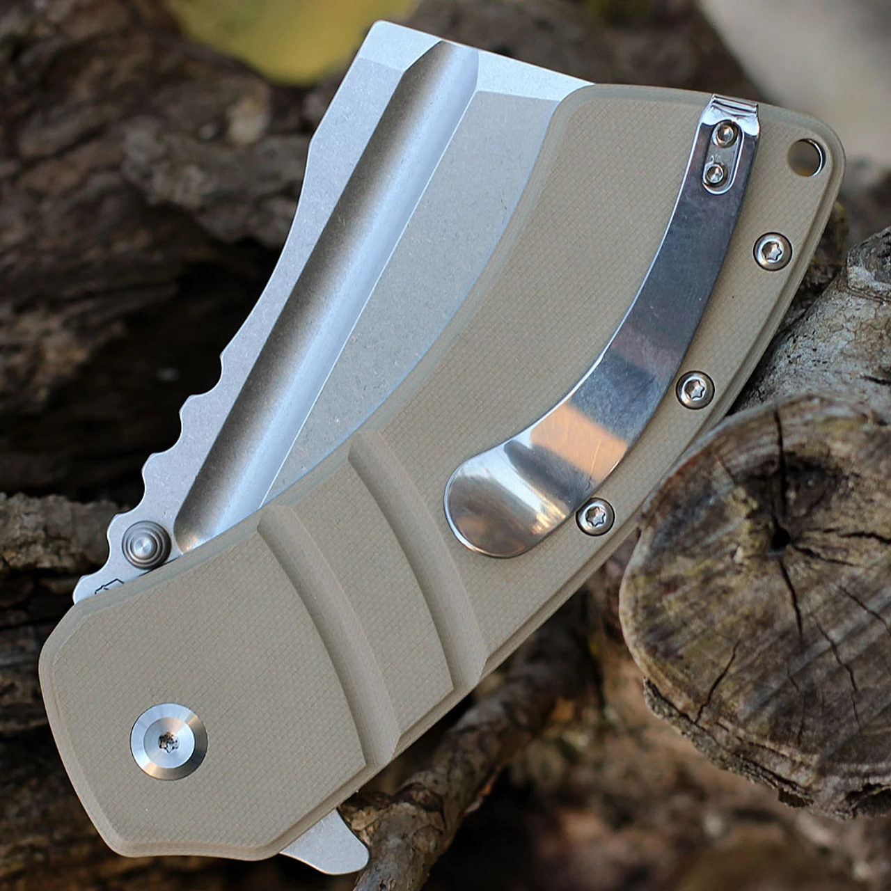Kansept XL Korvid Flipper (T1030A5)- 3.55″ Satin 154CM Cleaver Blade, Light Sand G10 Handle