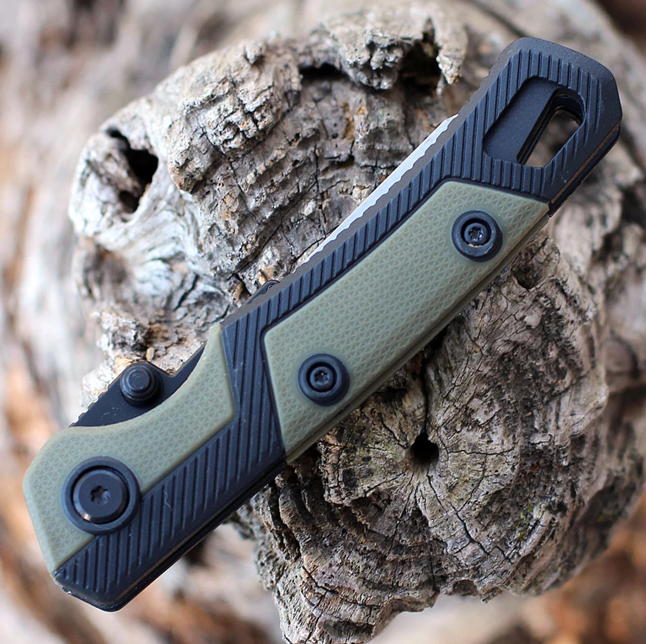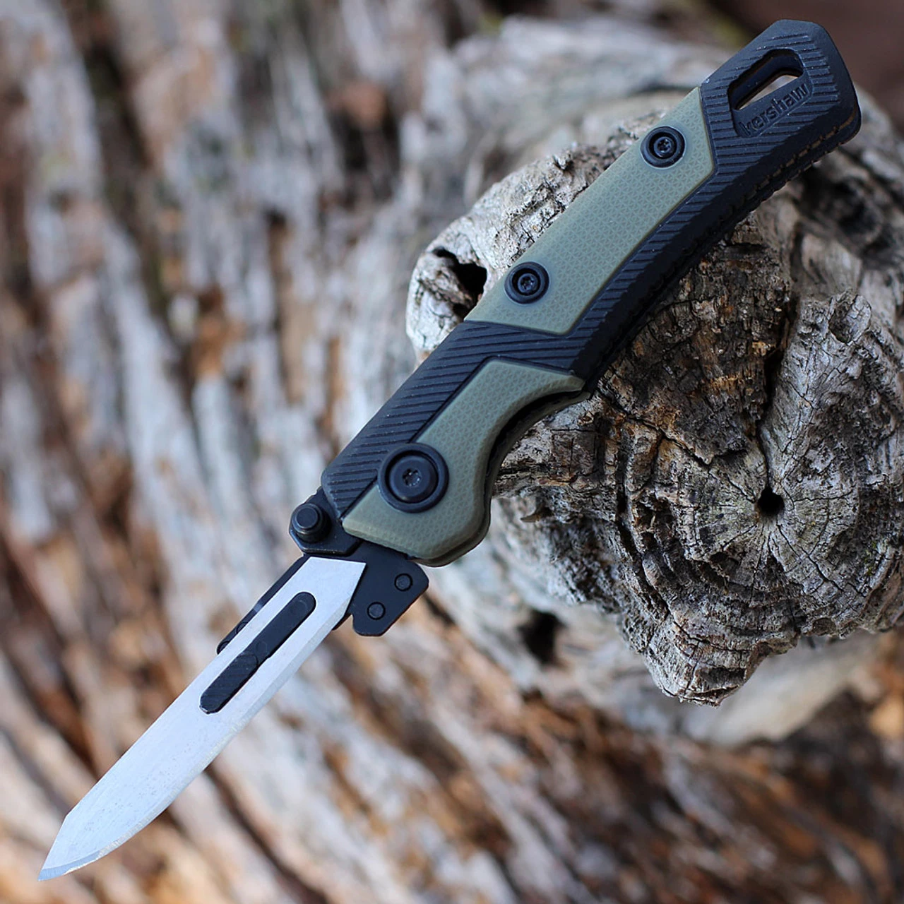 The manual opening LoneRock RBK 2 is an upgraded version of Kershaw’s skinning and caping knife. Like the original, it includes replaceable surgical-precision blades. Instead of having to stop and sharpen when a knife gets dull in the middle of skinning, just snap in a new blade and keep working. A liftable liner allows users to remove and replace blades safely and easily with a non-slip grip. The RBK 2 also features a revamped handle for greater ergonomics and longer work sessions. It comes with 15 blades and a “buddy” handle. This slim, extra handle holds an RBK 2 blade so that both you and your buddy can take on the skinning task—to get the job done quicker.
