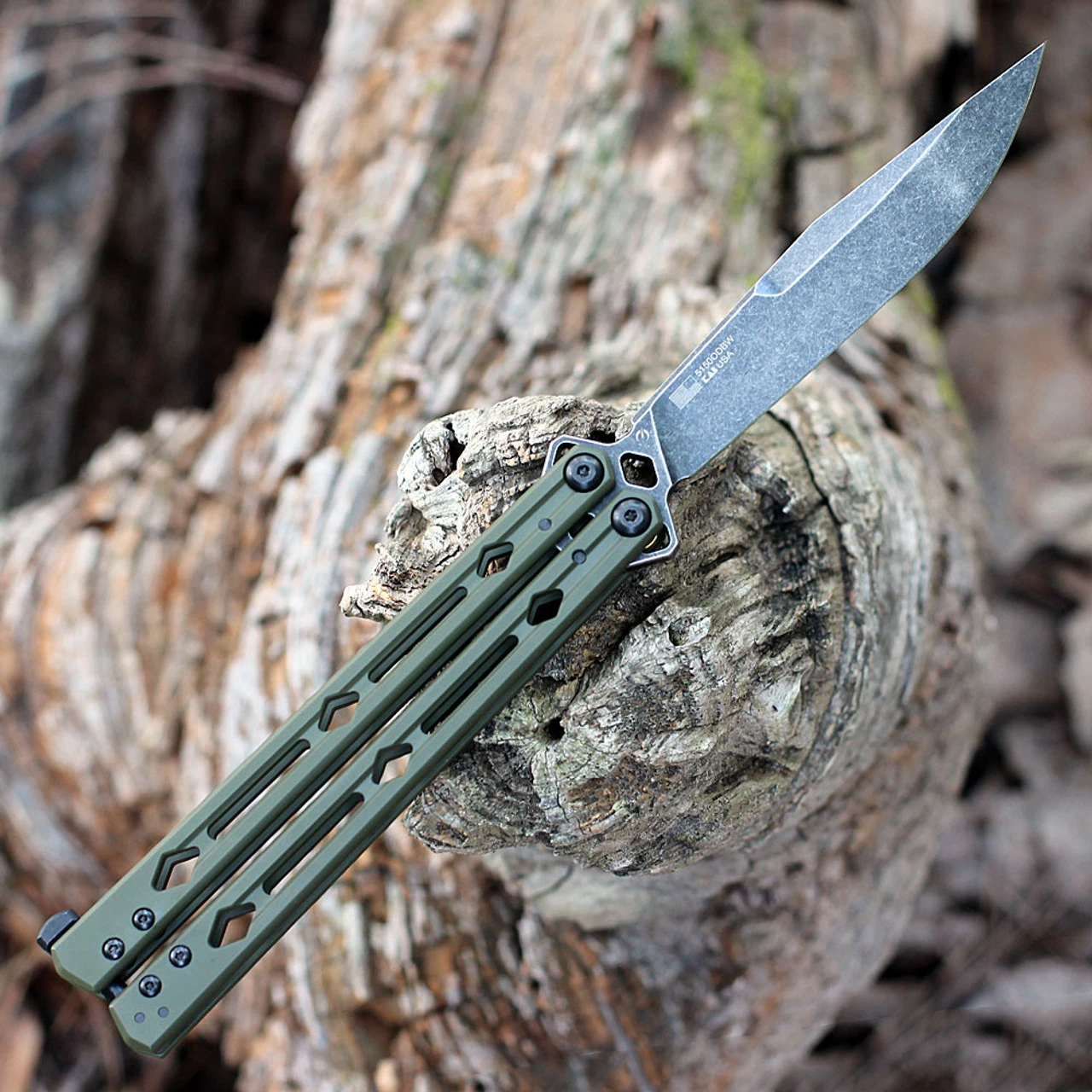Kershaw Lucha Balisong Butterfly Knife (5150ODBW) – 4.6″ 14C28N Blackwash Blade, OD Green Stainless Steel Handle 5150ODBW