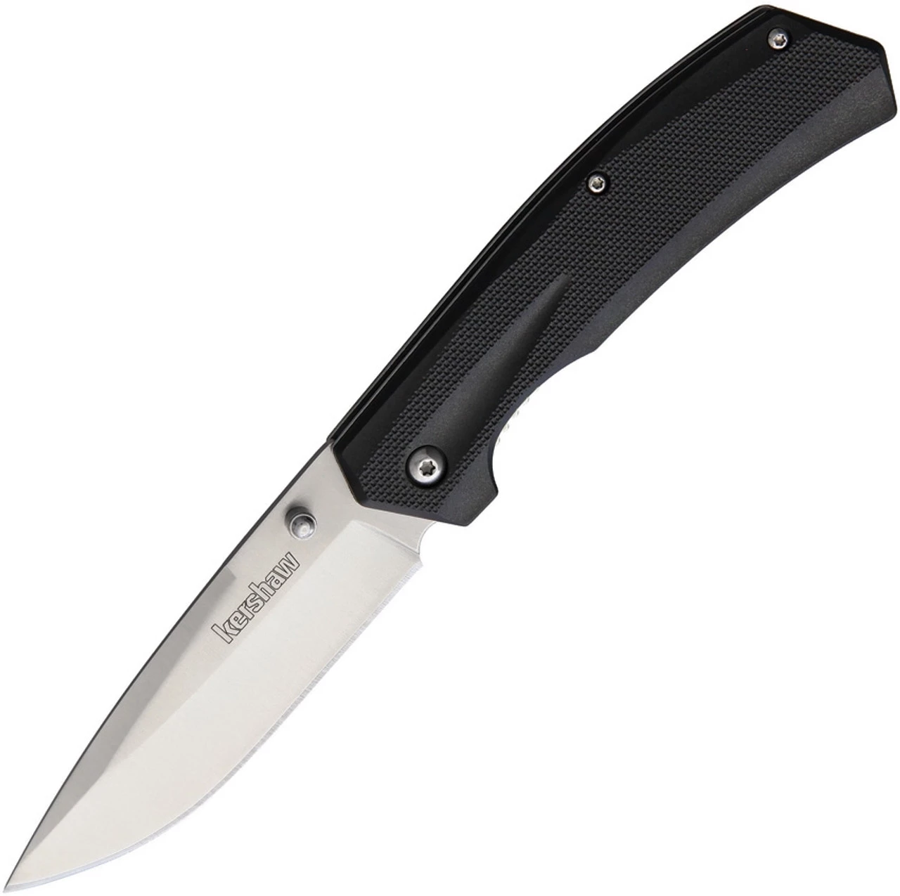 Kershaw Tarheel Folding Knife (1364) – 3.5″ Satin Stainless Drop Point Blade, Black Synthetic Handle