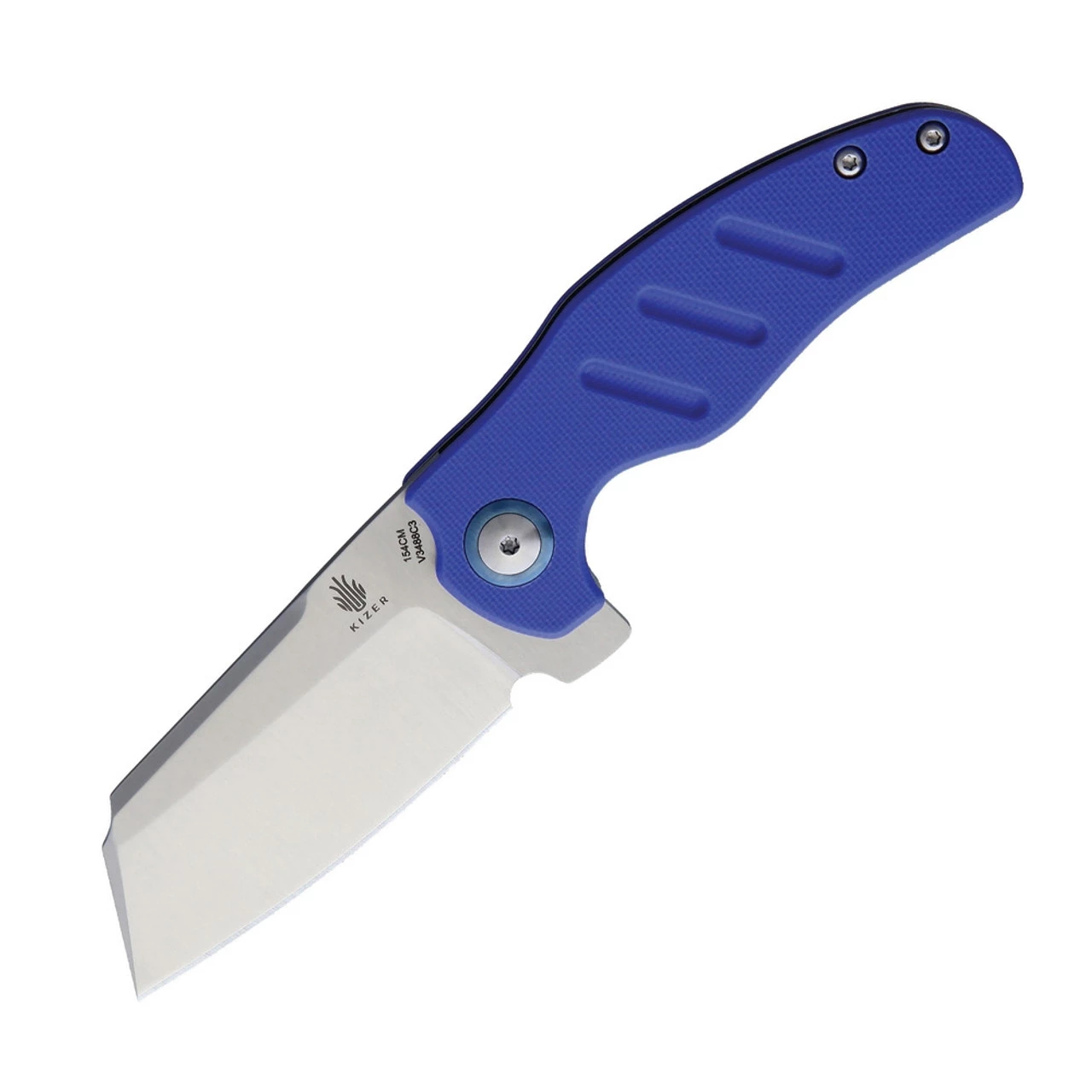 Kizer Vanguard Series MINI Sheepdog C01c Knife (V3488C3) – 2.63″ 154CM Satin Sheepsfoot Blade, Blue G10 Handles