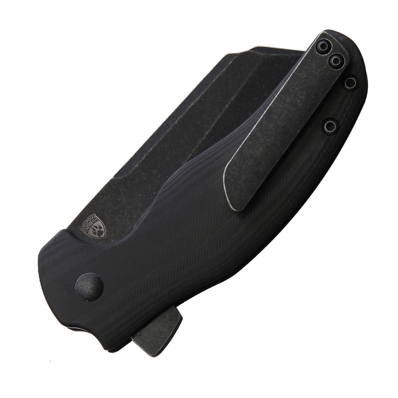 The Kizer Sheepdog C01c features a heavy-duty cleaver design from Chris Conaway of Sheepdog Knives. Premium CPM-S35VN blade steel provides excellent wear resistance and edge retention. The blade deploys effortlessly on a smooth ball bearing pivot, and locks up solid. Carbon fiber handle scales offers top-notch durability and a lightweight frame. This knife offers a remarkable combination of tactical functionality and a refined, stylish appearance.